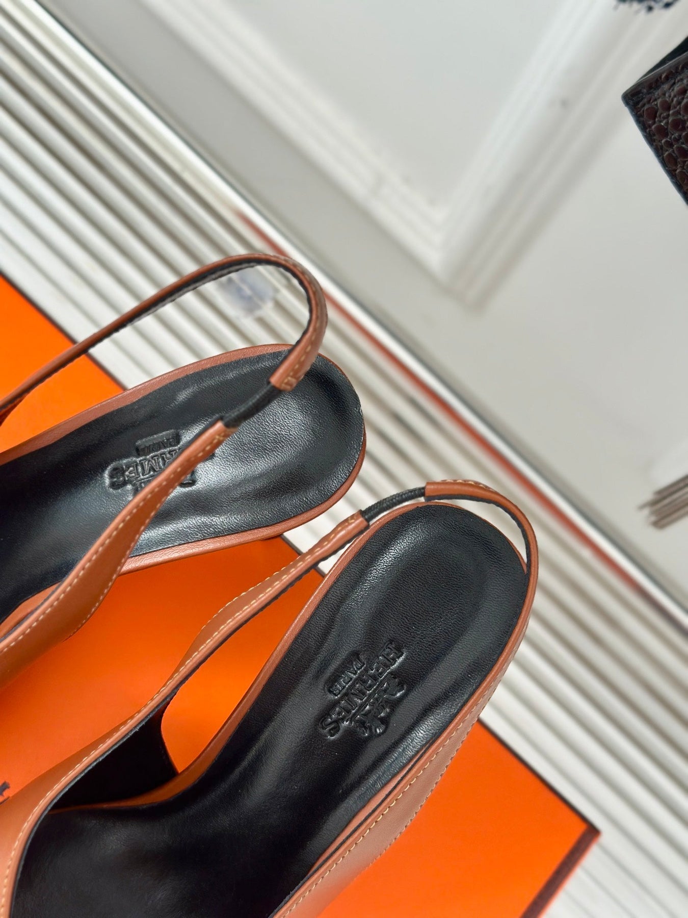 HIGH HEEL 75 MM POINTED- TOE SANDAL IN BRONZE BROWN CALFSKIN