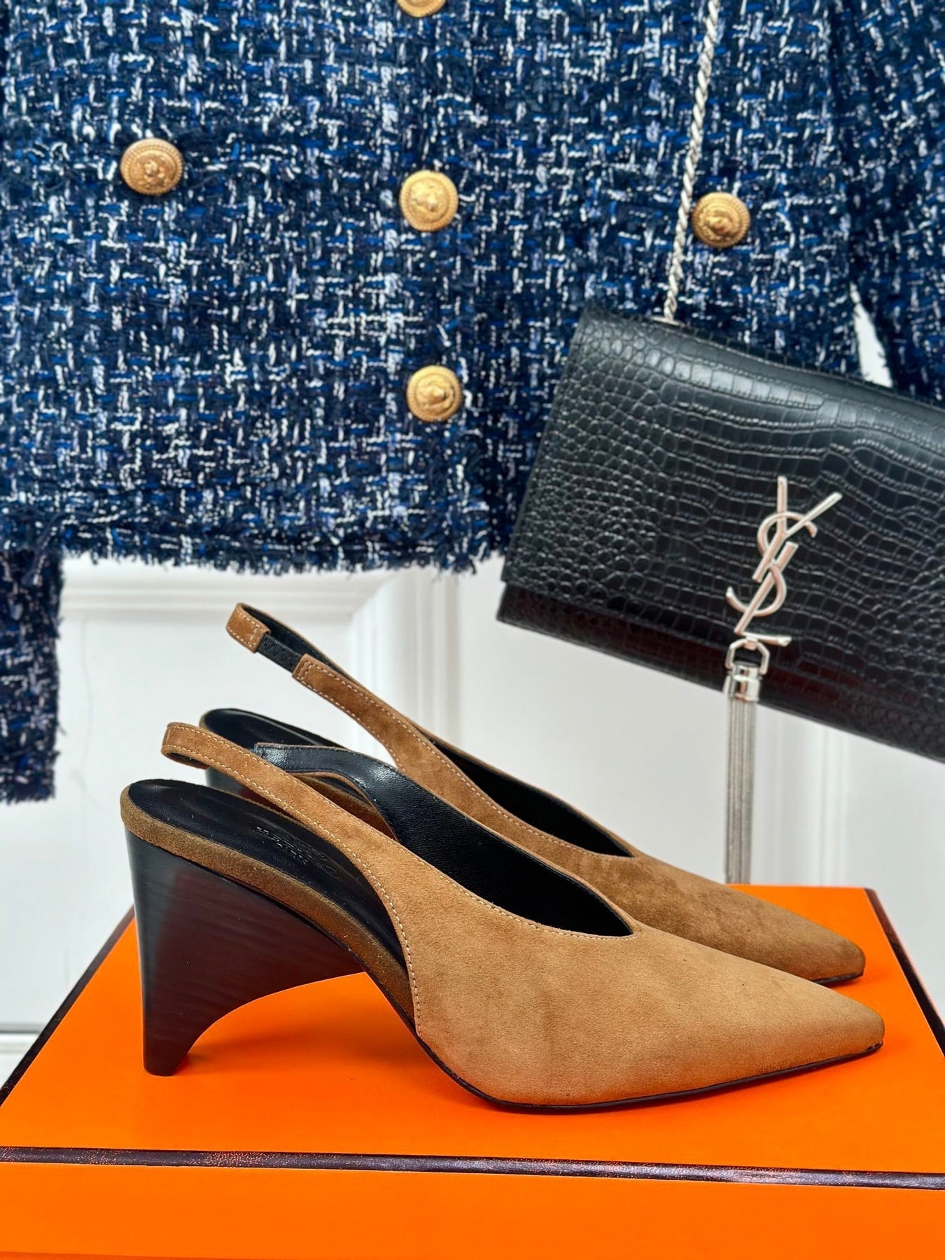 HIGH HEEL 75 MM POINTED- TOE SANDAL IN CIDER BROWN SUEDE