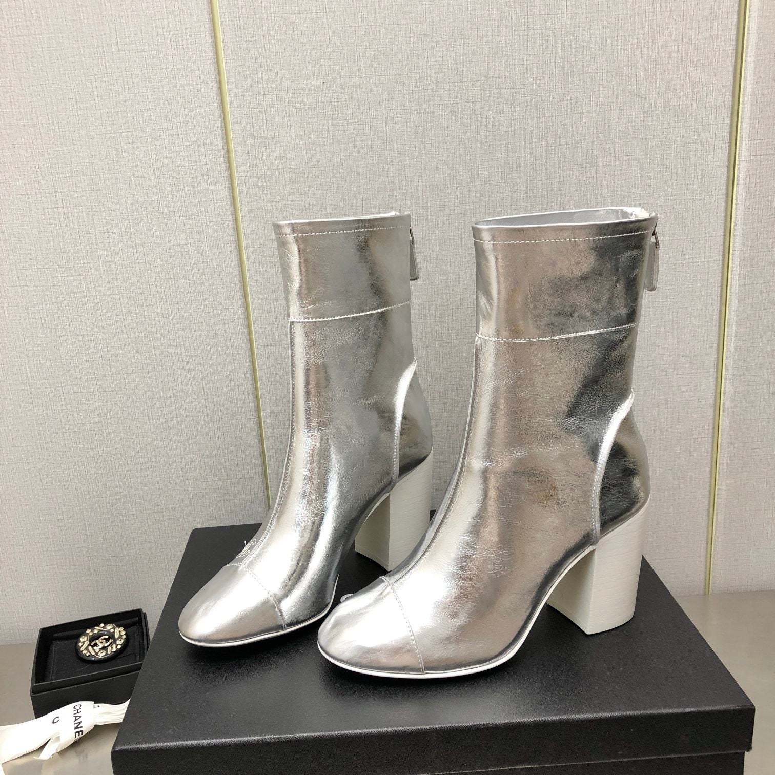 HIGH HEEL ANKLE BOOTS IN SILVER CALFSKIN