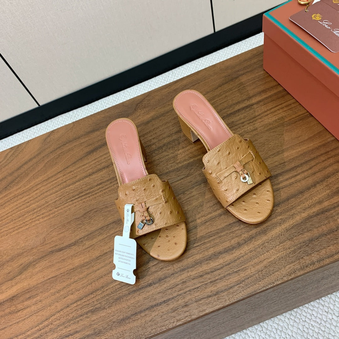HIGH HEEL IN LIGHT BROWN LAMBSKIN OSTRICH SKIN