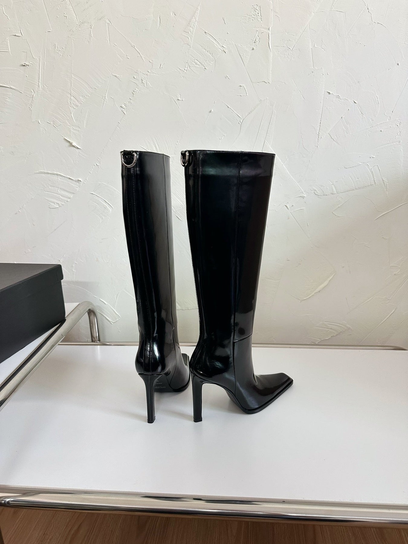 HIGH HEEL KNEE BOOTS IN BLACK SHINY CALFSKIN