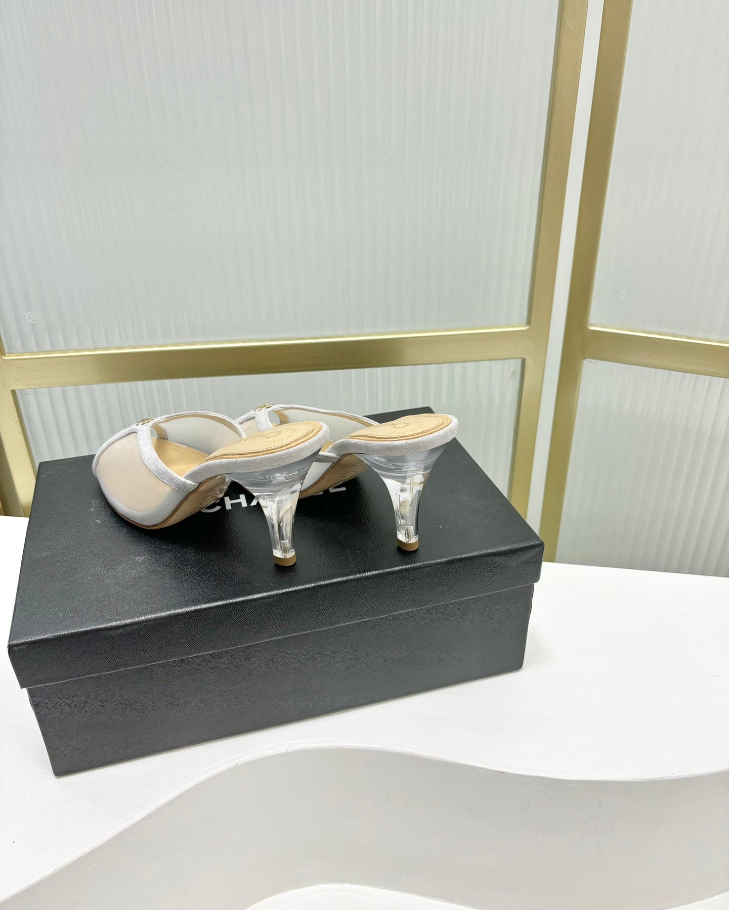 HIGH HEEL PEEP TOE IN WHITE BREATHABLE MESH