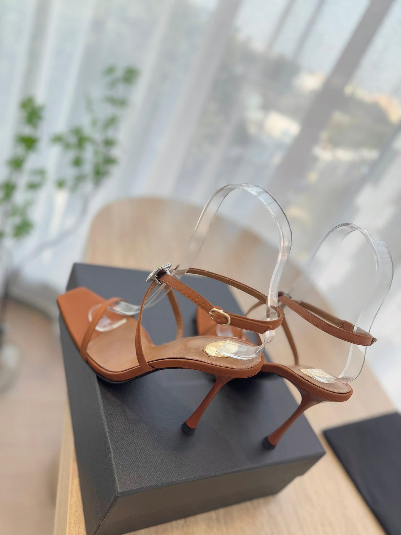 HIGH HEEL SANDAL 10 CM IN BRONZE BROWN SATIN CREPE AND CRYSTAL