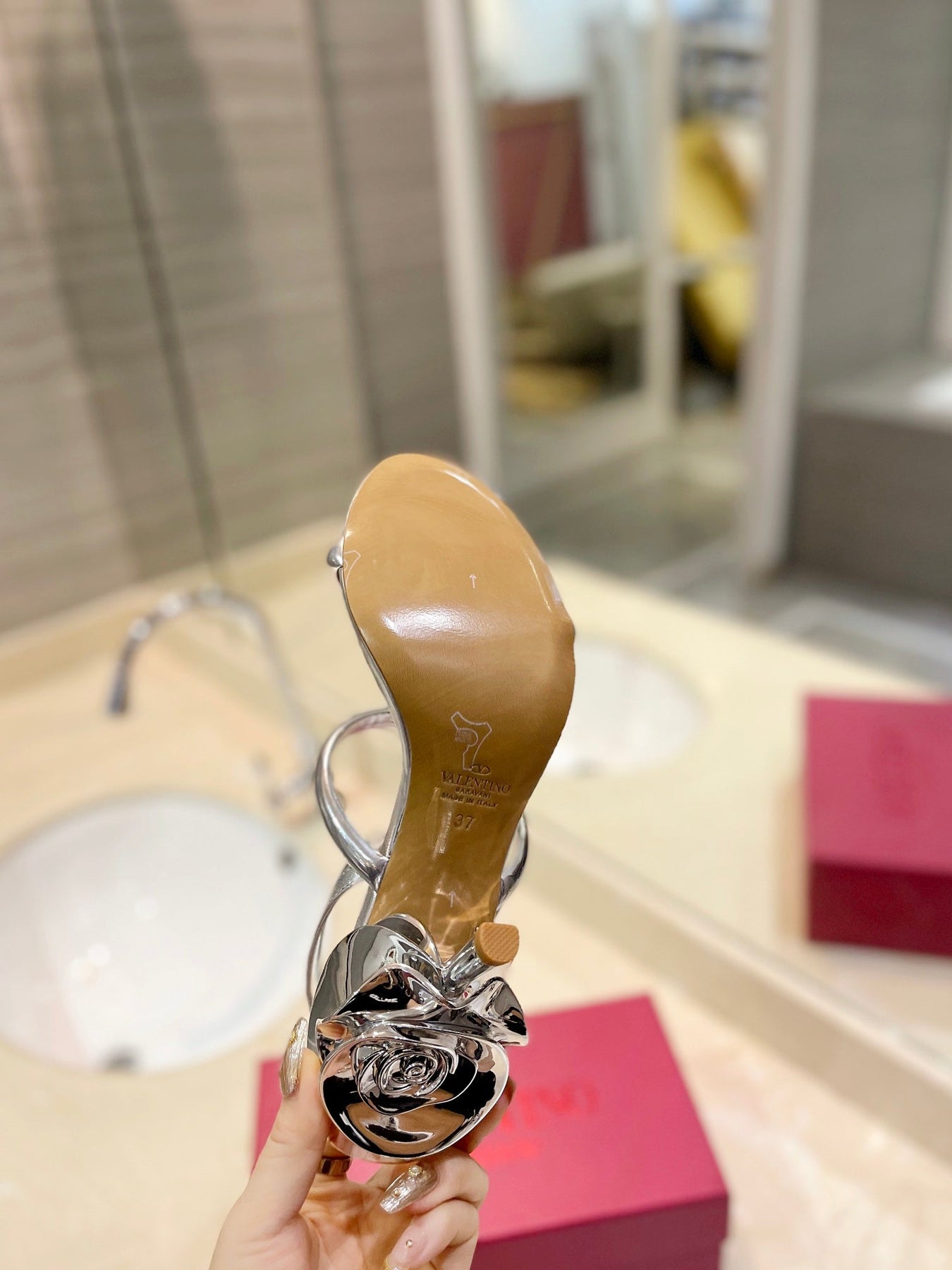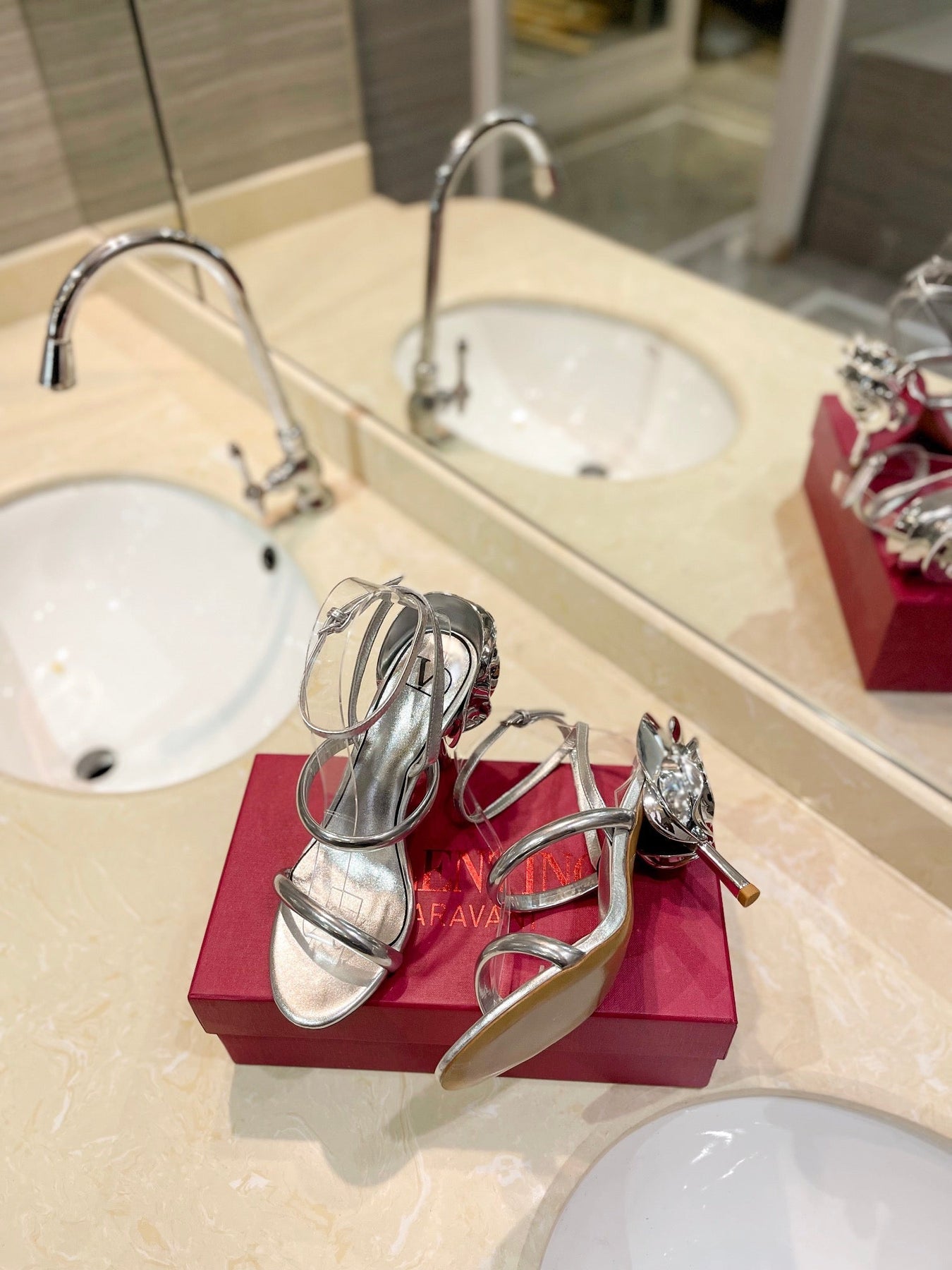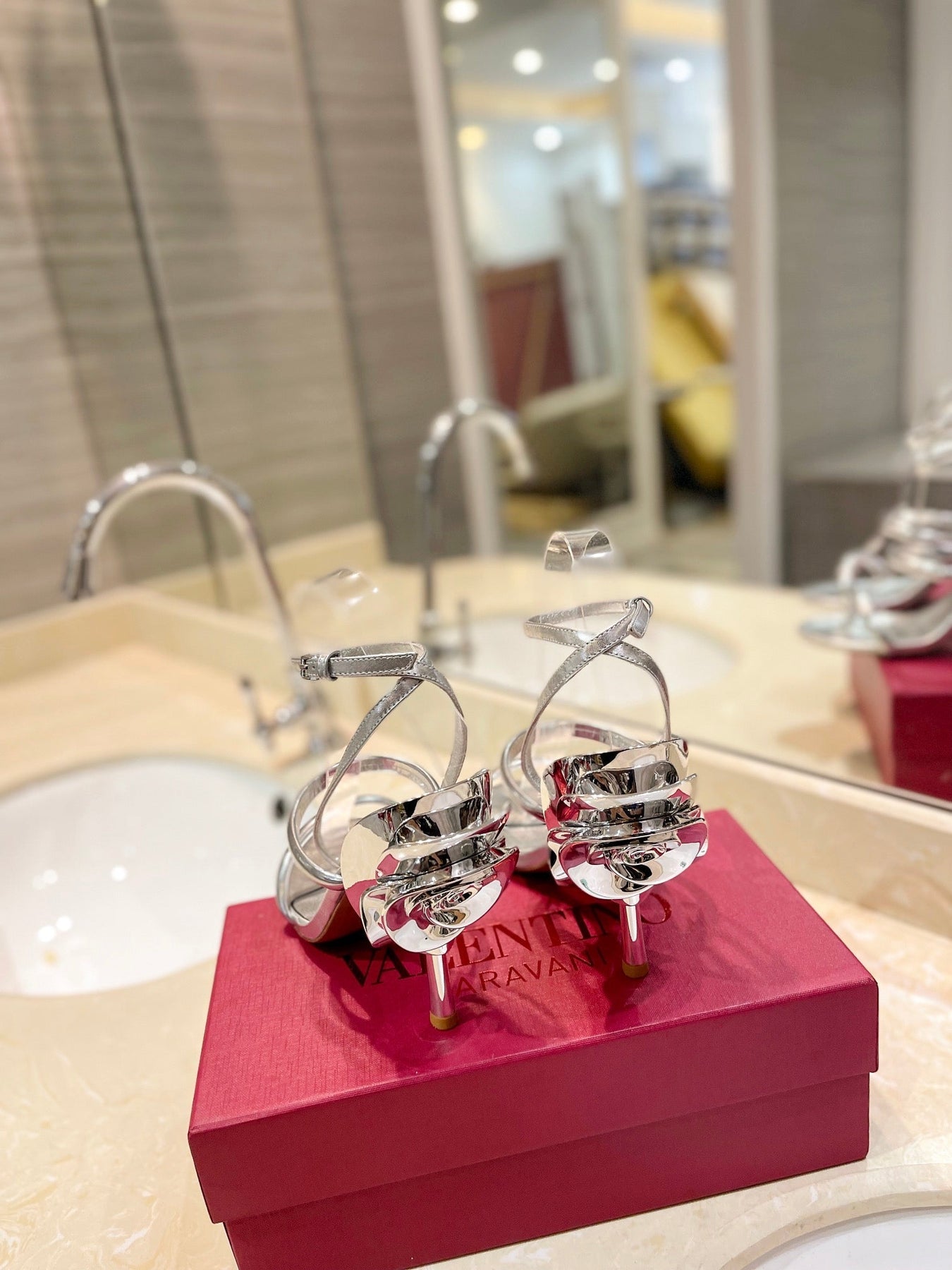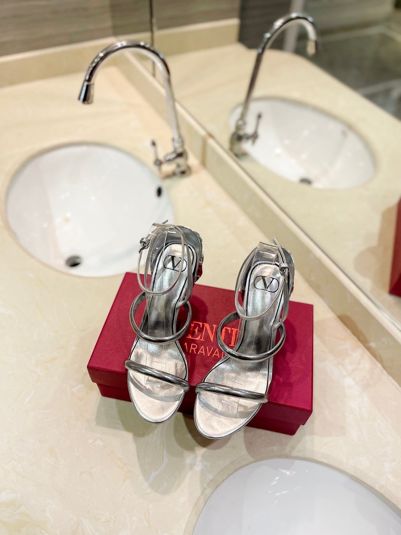 HIGH HEEL SANDAL 10 CM IN SILVER CALFSKIN