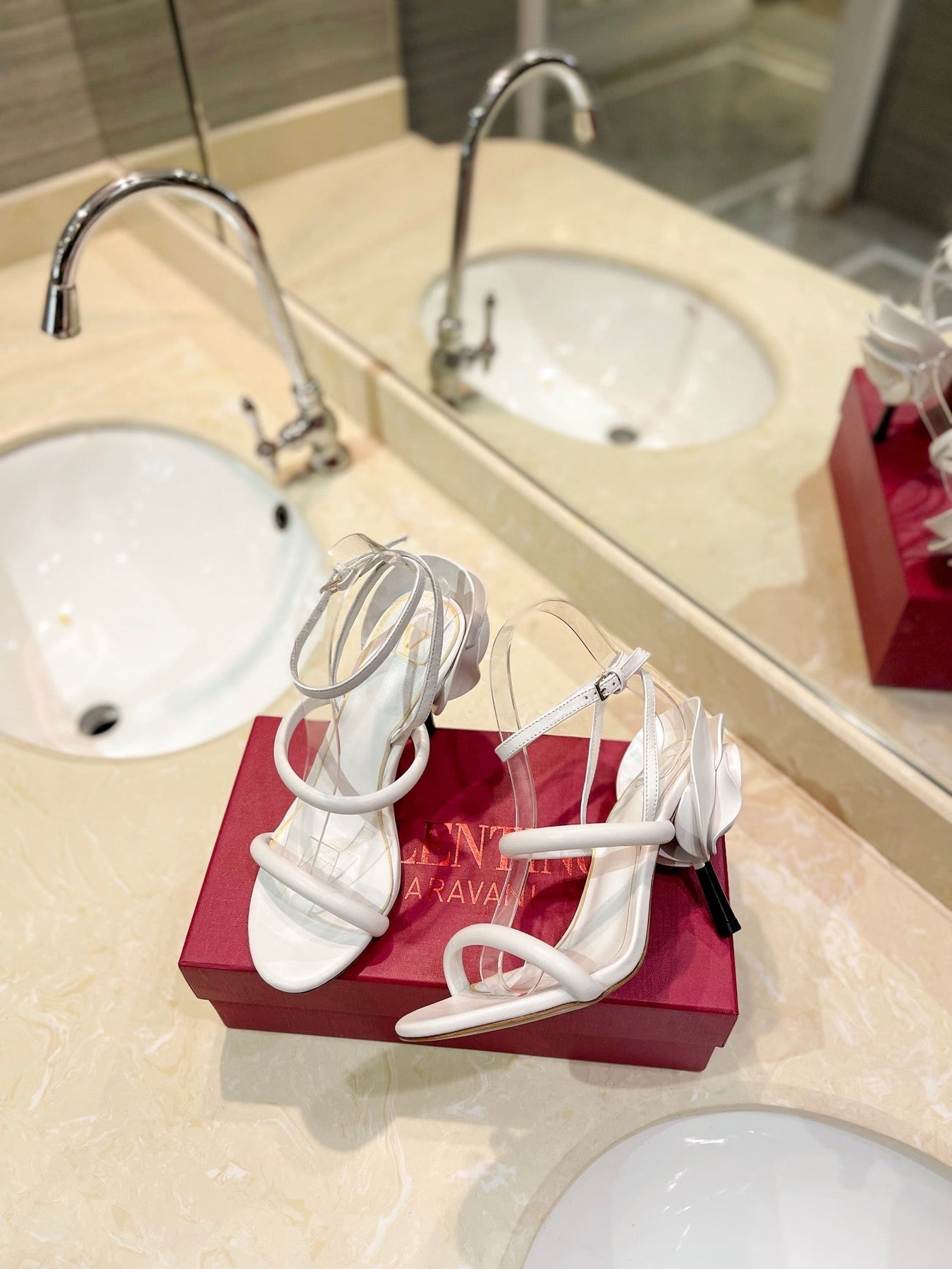 HIGH HEEL SANDAL 10 CM IN WHITE CALFSKIN