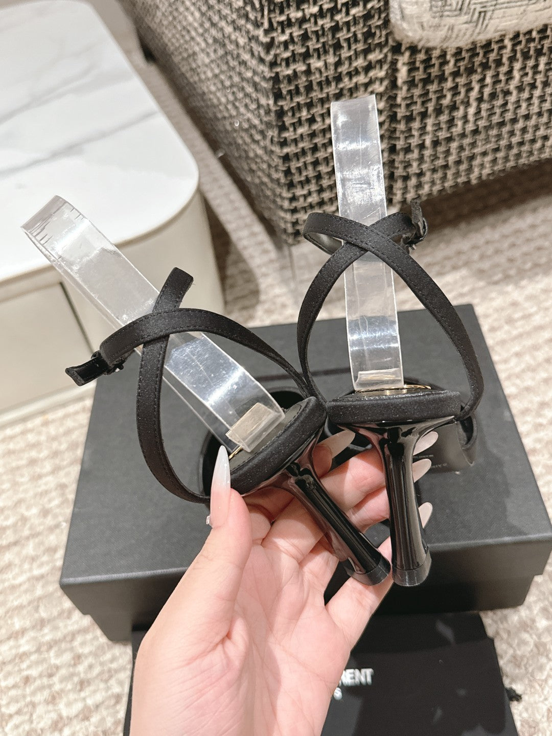 HIGH-HEELED SLINGBACKS SANDAL 7 CM IN BLACK SILK