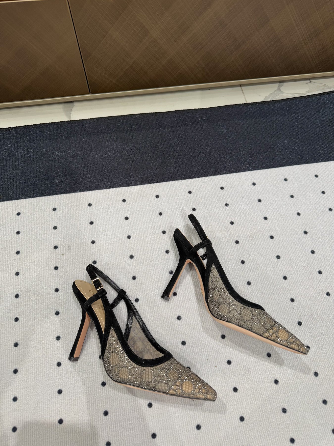 HIGH HEELS SLINGBACK IN BLACK LAMB SUEDE 10 CM