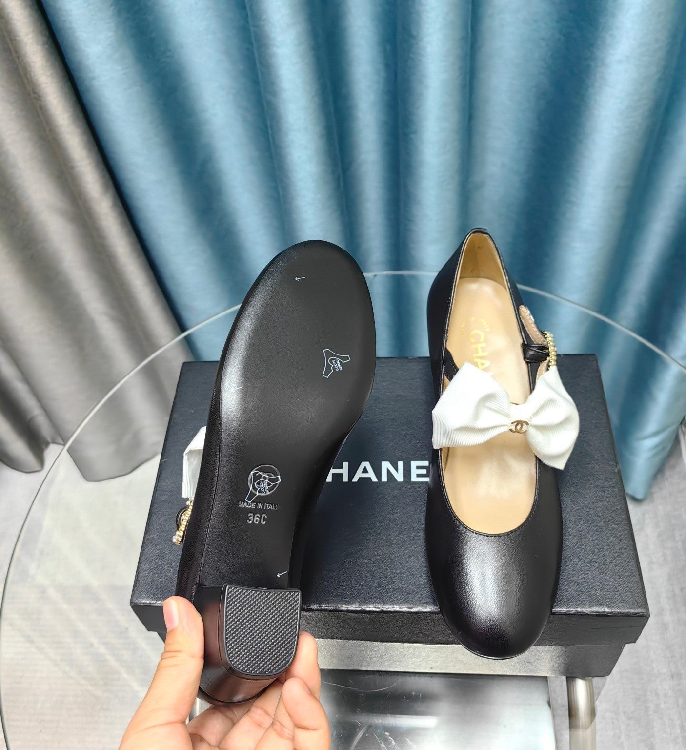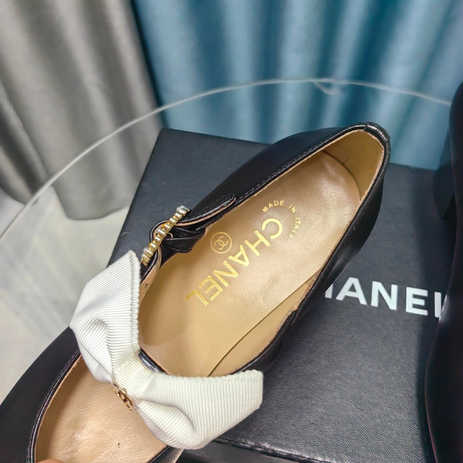 HIGH MARY JANE SHOES BLACK SHEEPSKIN WITH WHITE BOW