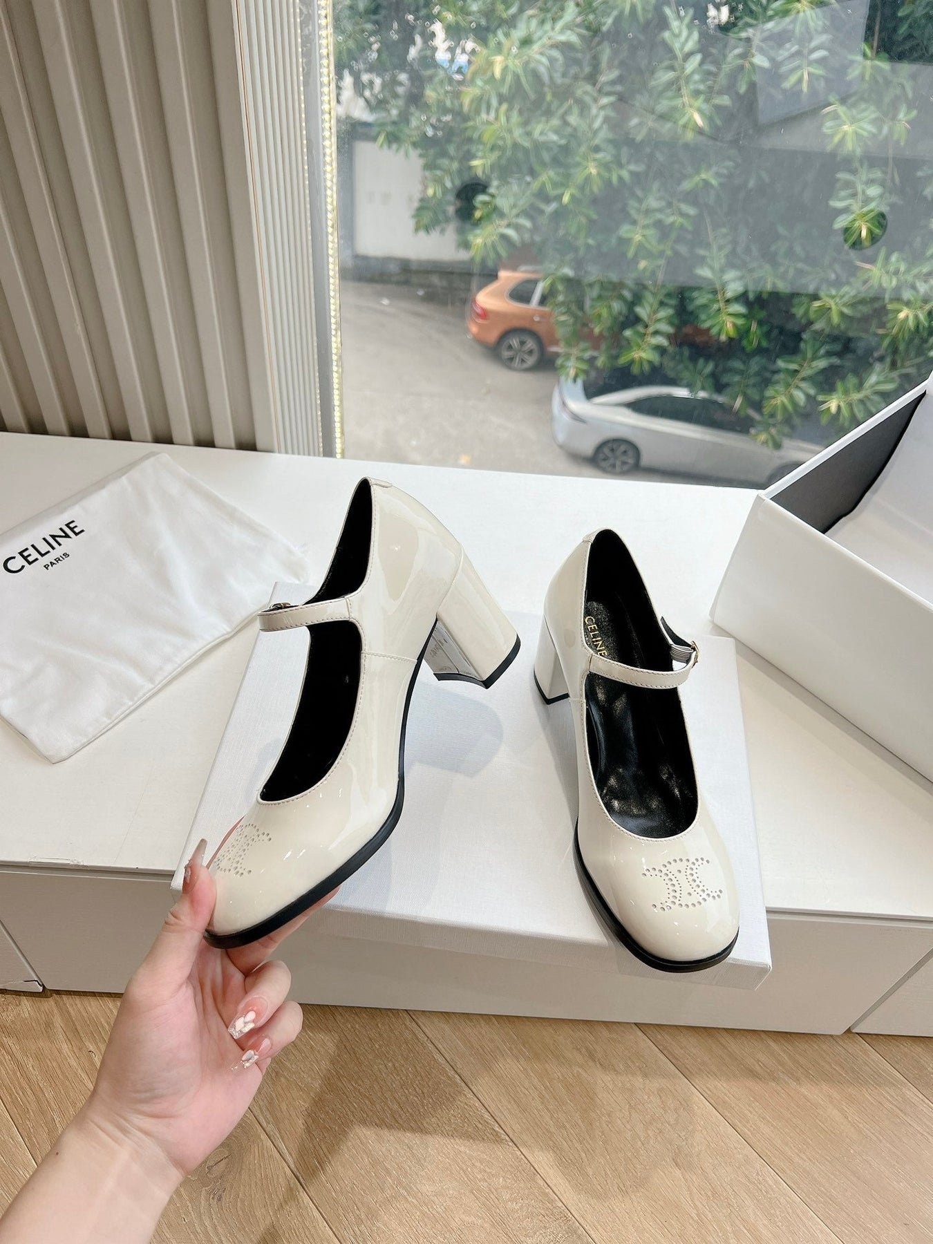 HIGH MARY JANE SHOES IN WHITE PATENT CALFSKIN