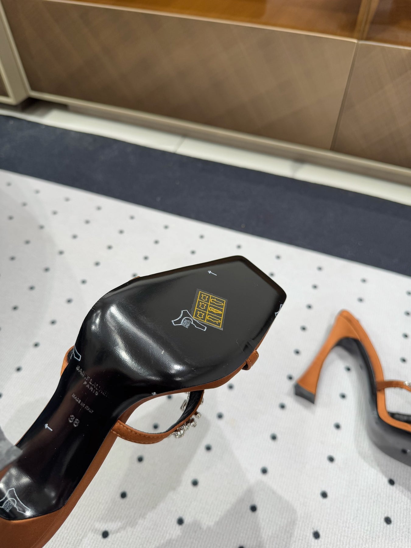HIGH RHINESTONE CROSS STRAP MULES IN BRONZE BROWN SILK