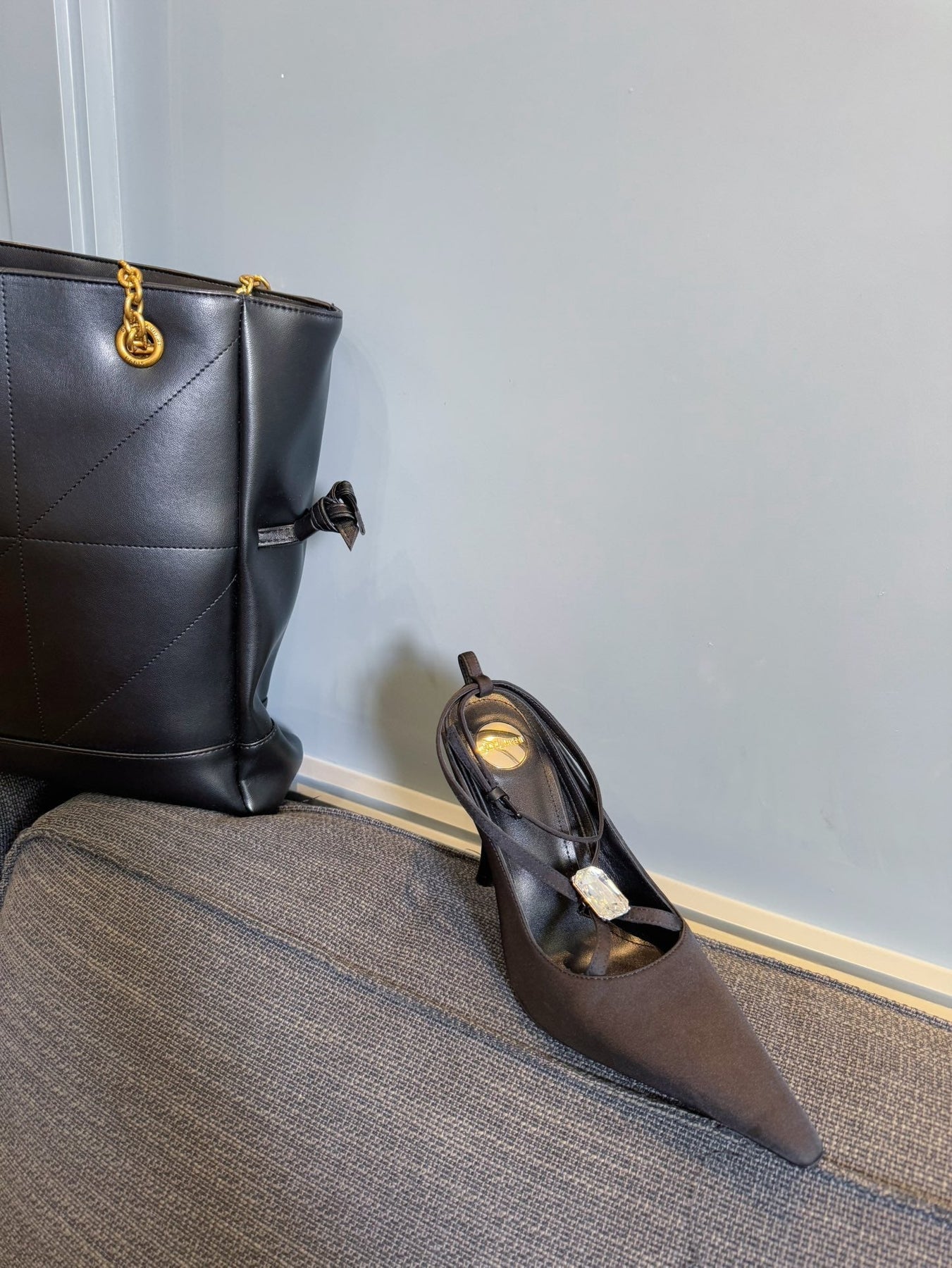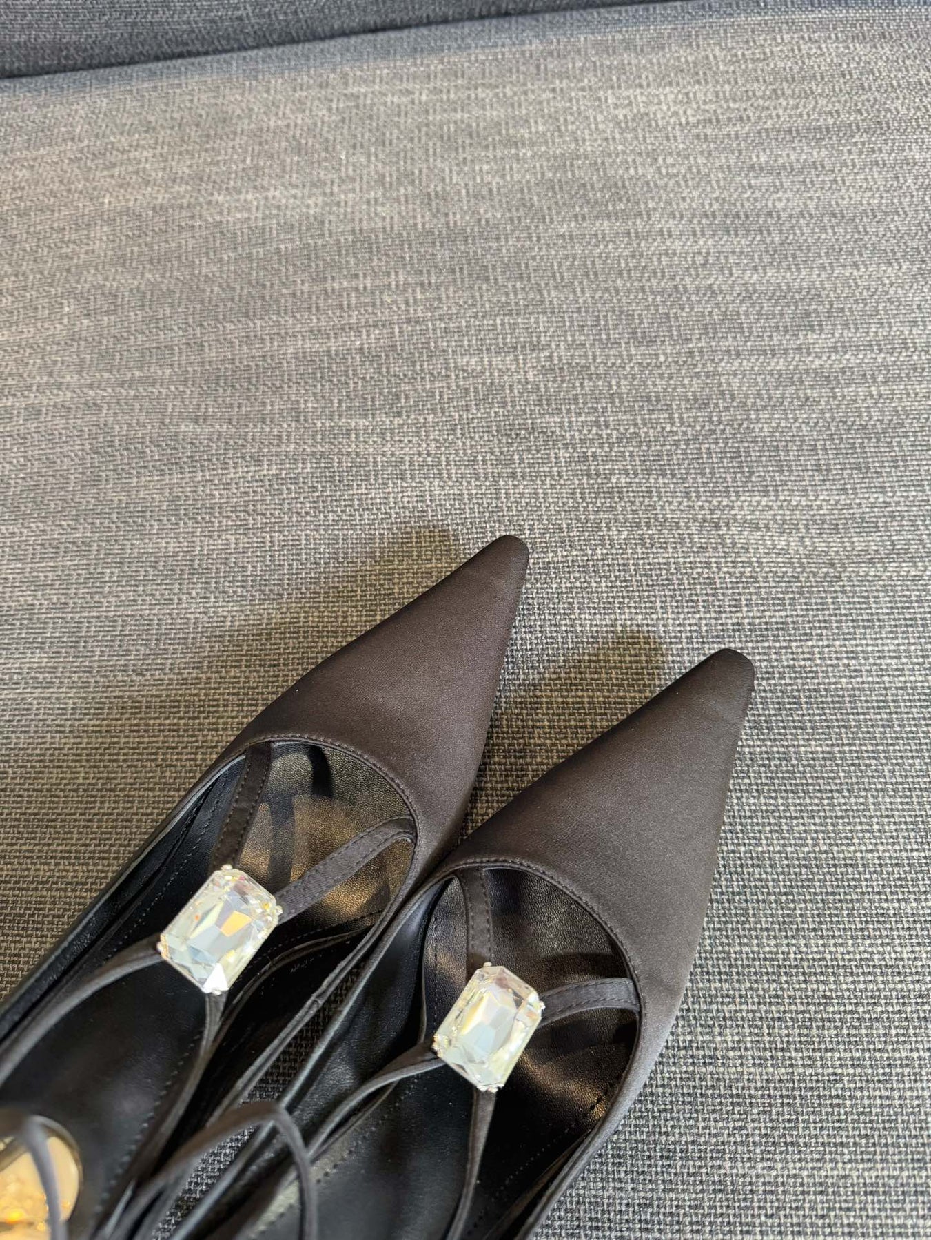 HIGH SANDAL ATTACHED GEM IN BLACK SILK