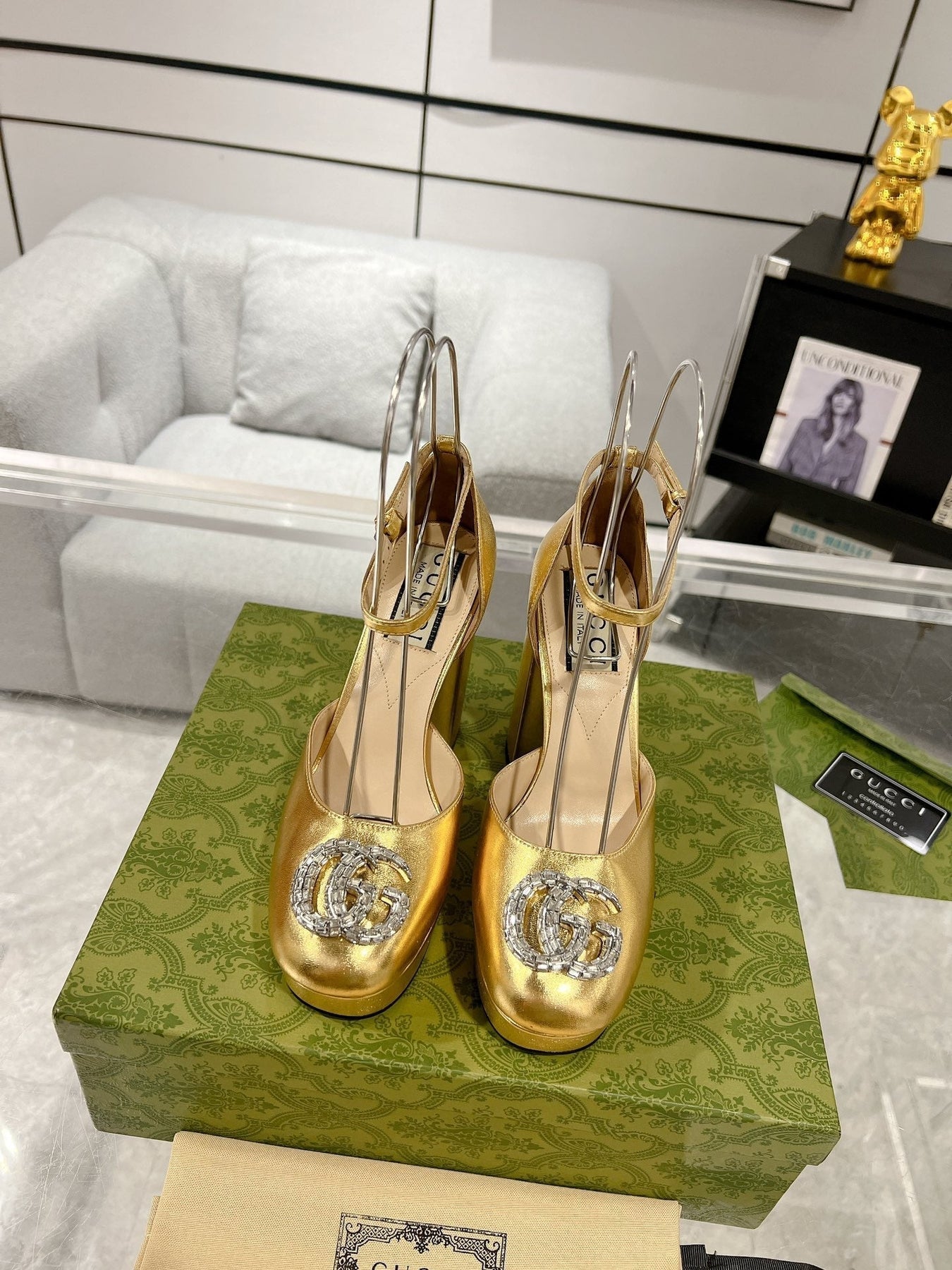 HIGH SANDAL SQUARE HEEL 12 CM IN GOLD CALFSKIN