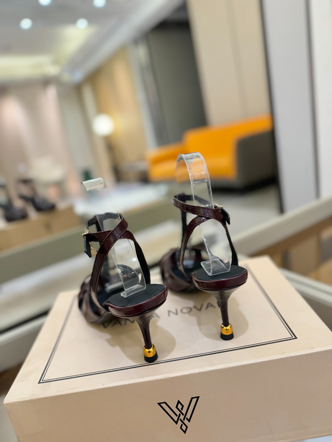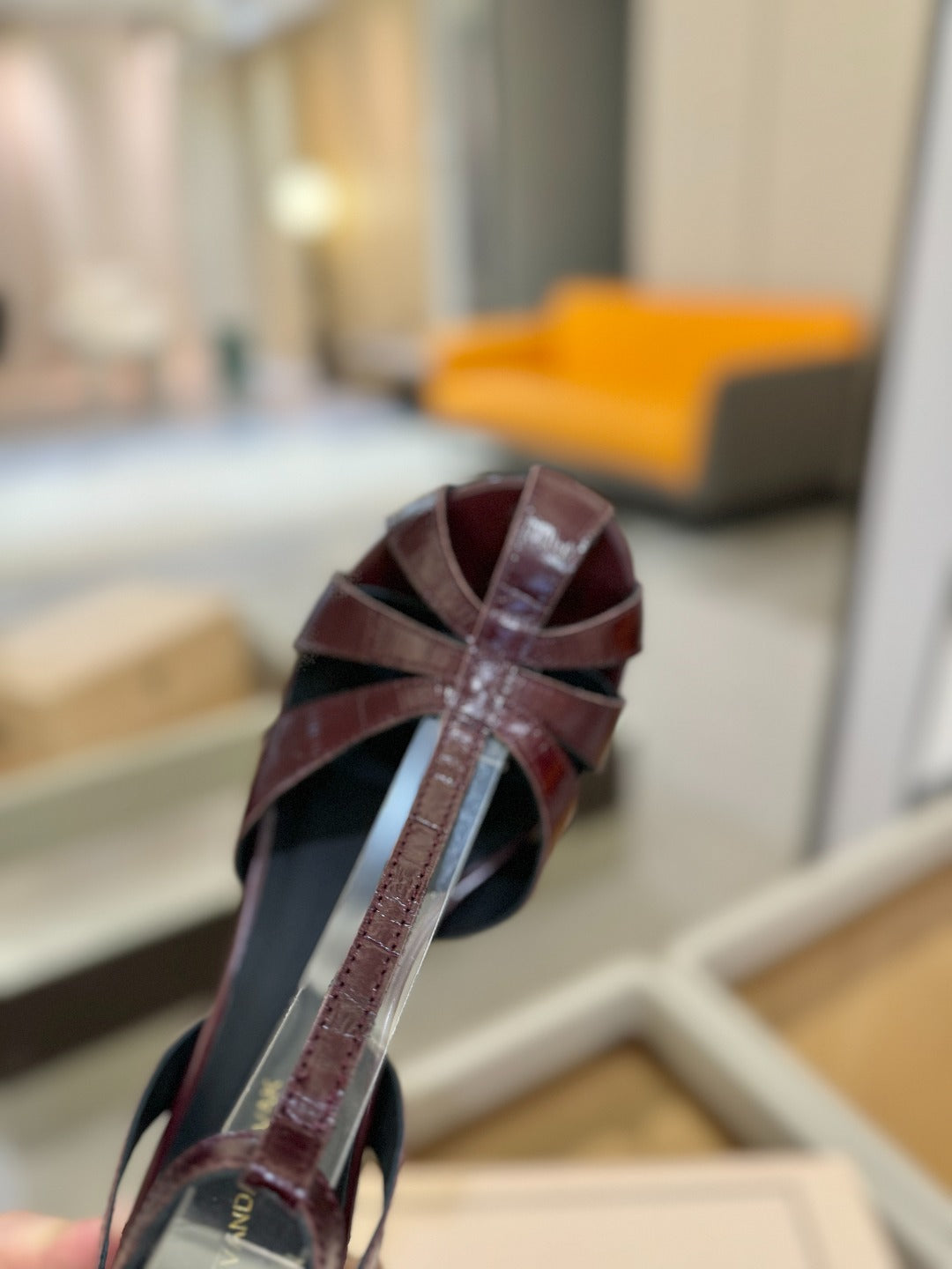 HIGH SANDALS 75 MM IN MAHOGANY RED PATENT CALFSKIN