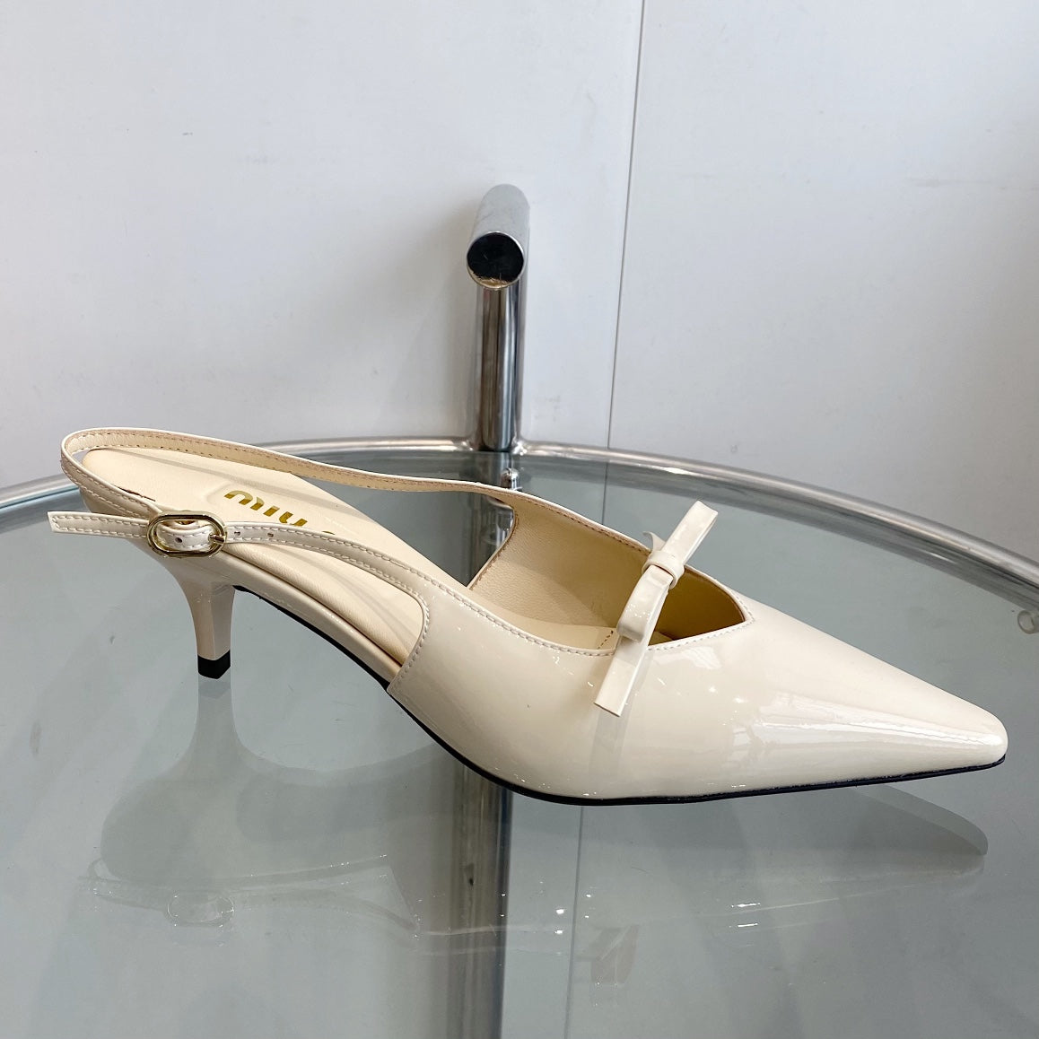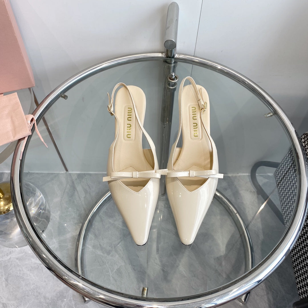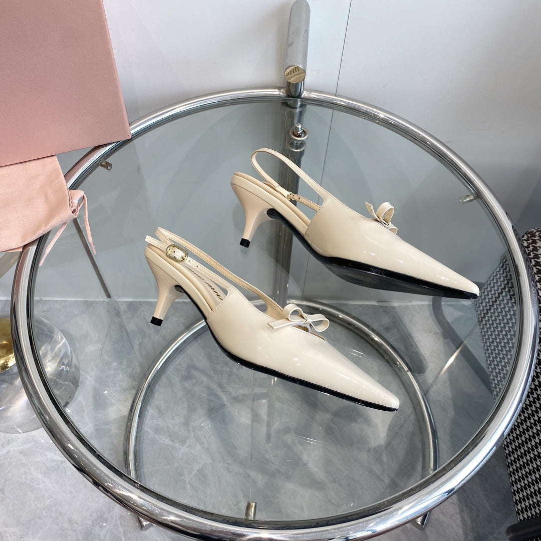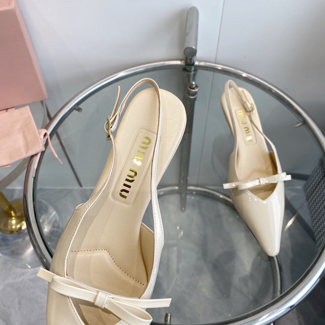 HIGH-SLINGBACK POINTED TOE SANDALS BEIGE COWHIDE WITH BOW