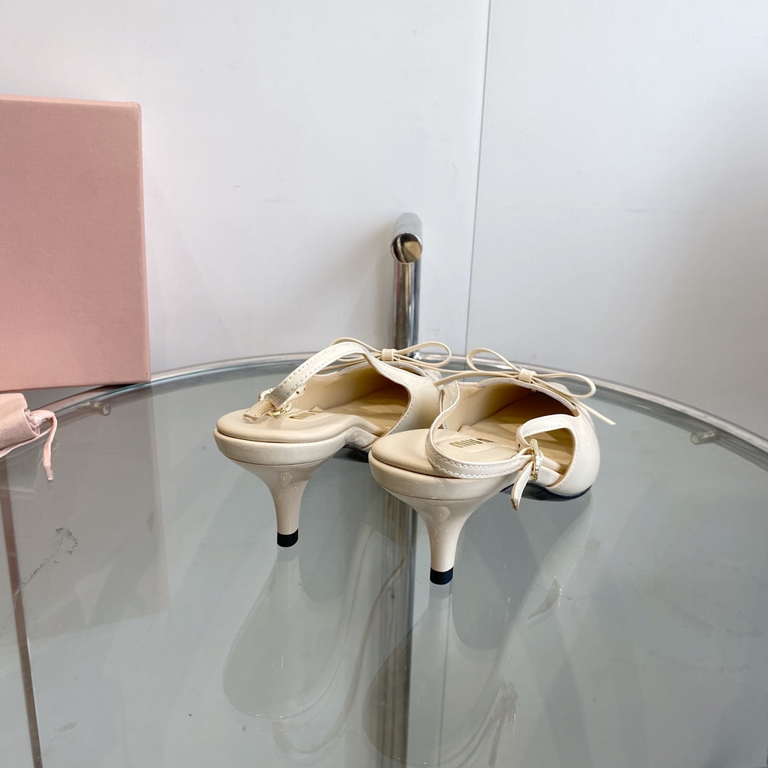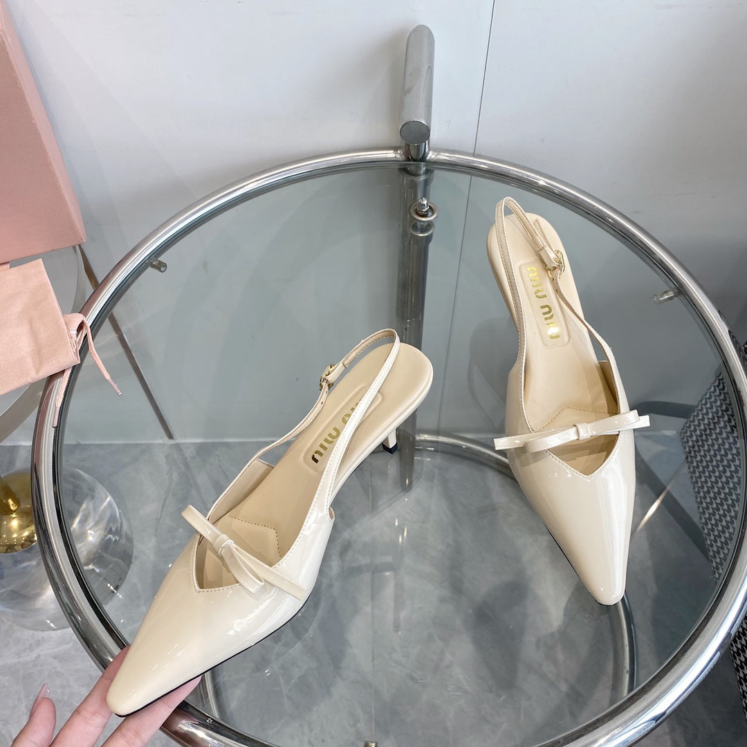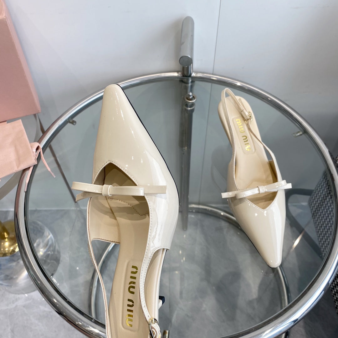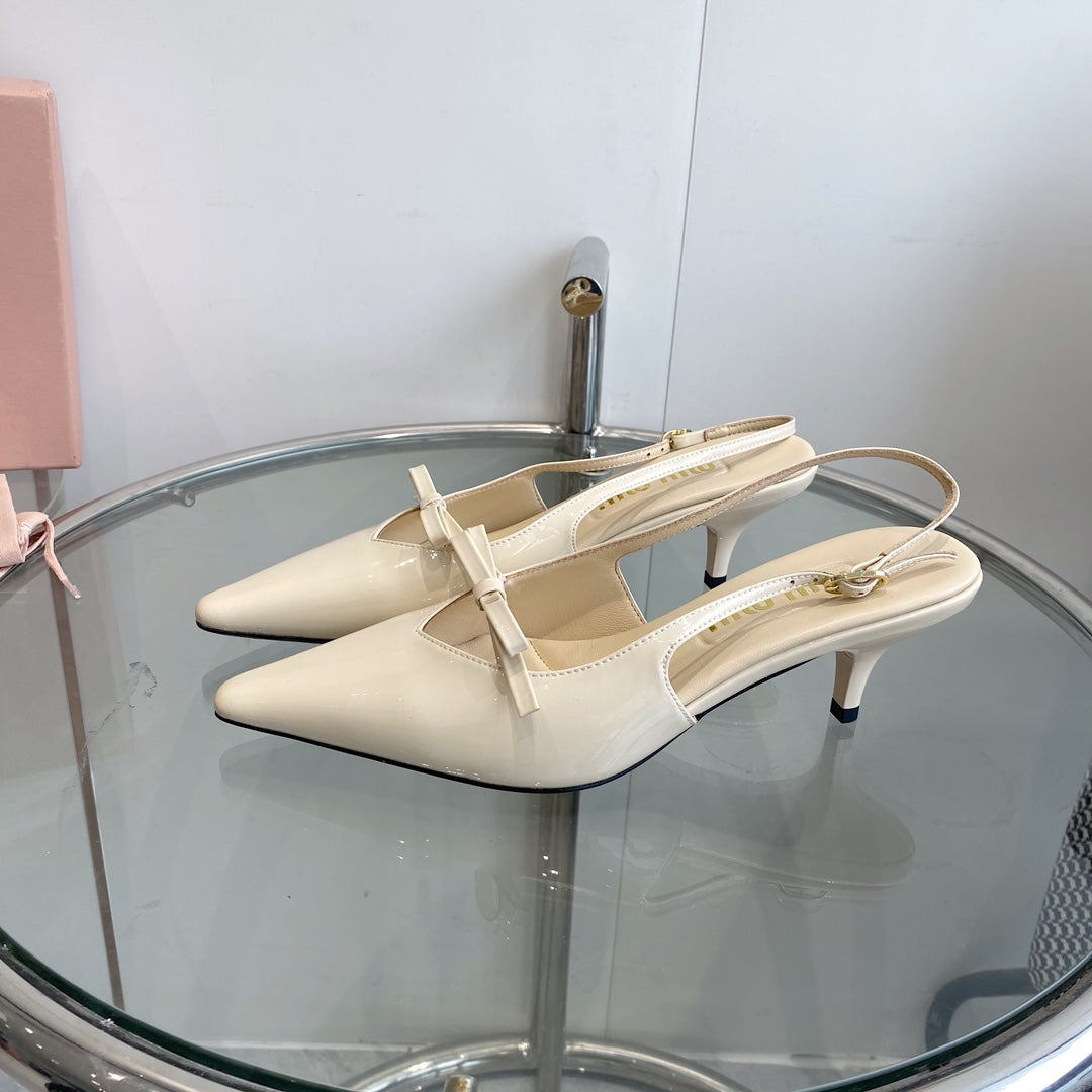 HIGH-SLINGBACK POINTED TOE SANDALS BEIGE COWHIDE WITH BOW