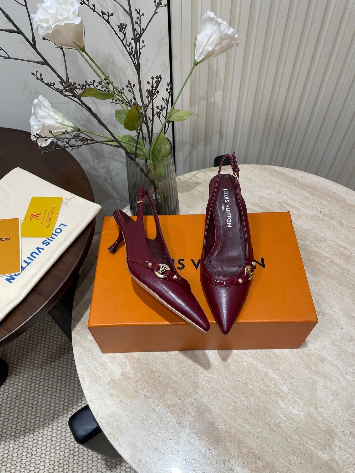 HIGH SLINGBACKS 5 CM IN BURGUNDY RED CALFSKIN