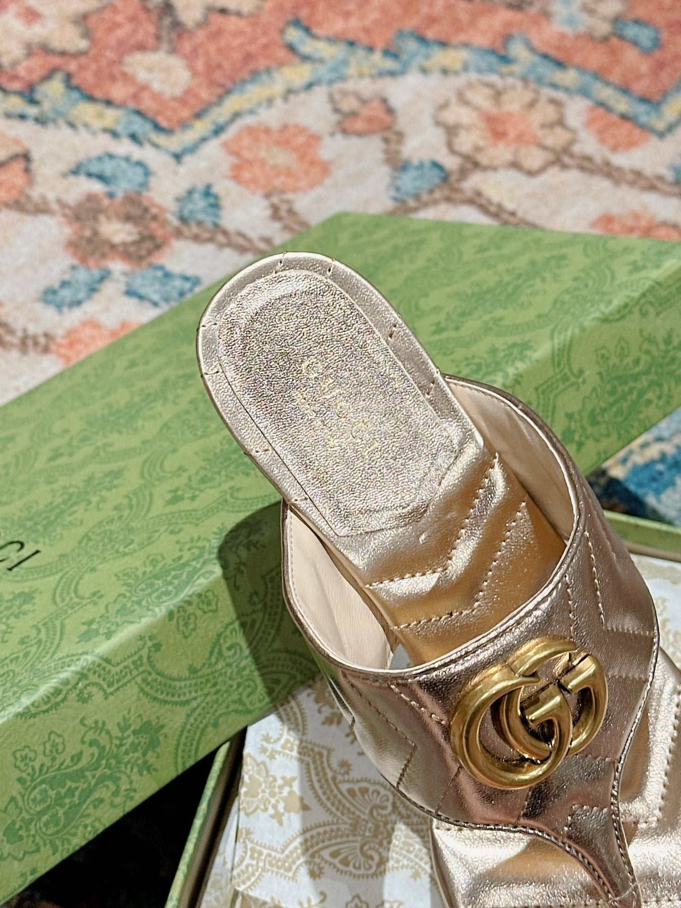 HIGH THONG MULE 55MM IN LIGHT GOLD CALFSKIN WITH GOLD HARDWARE