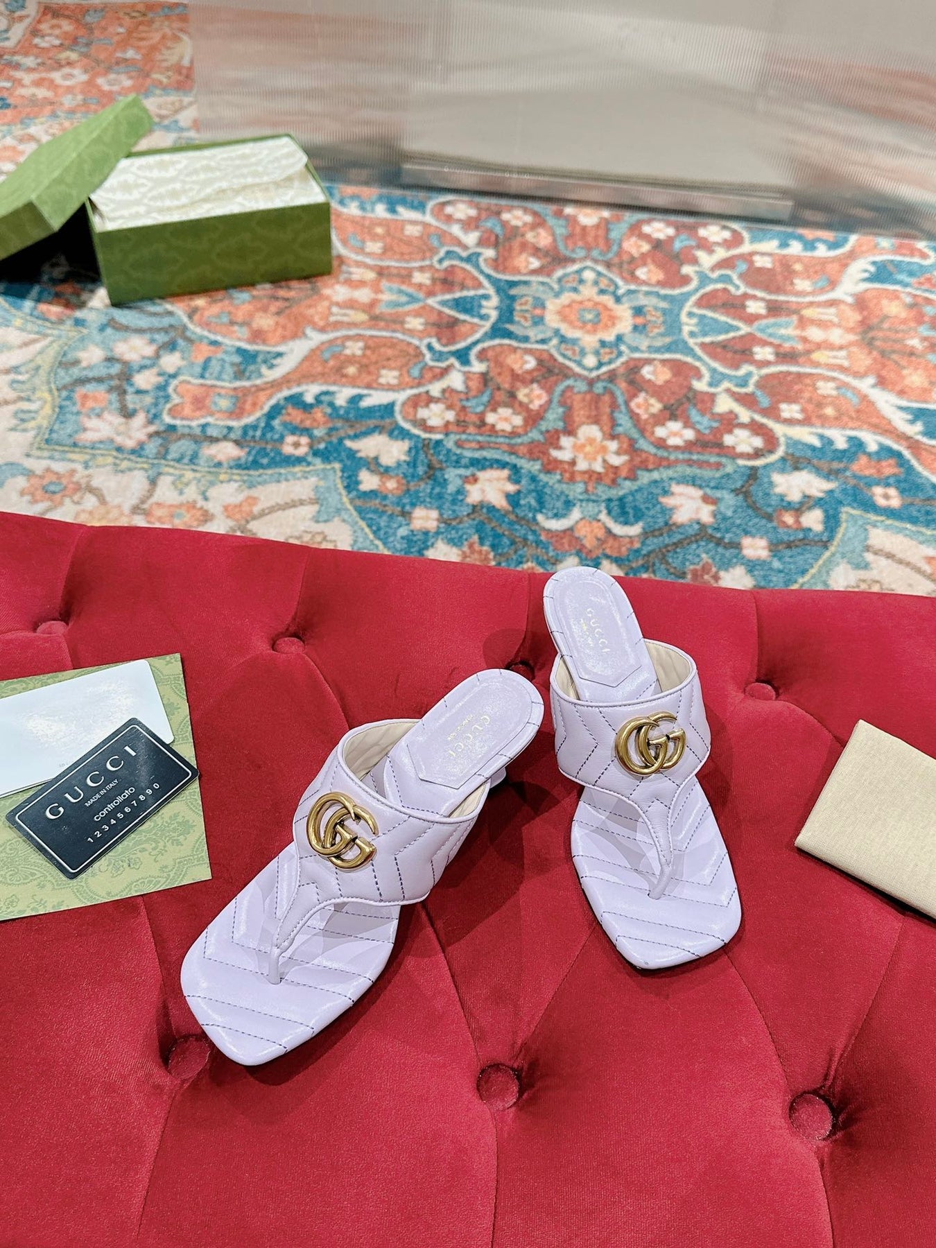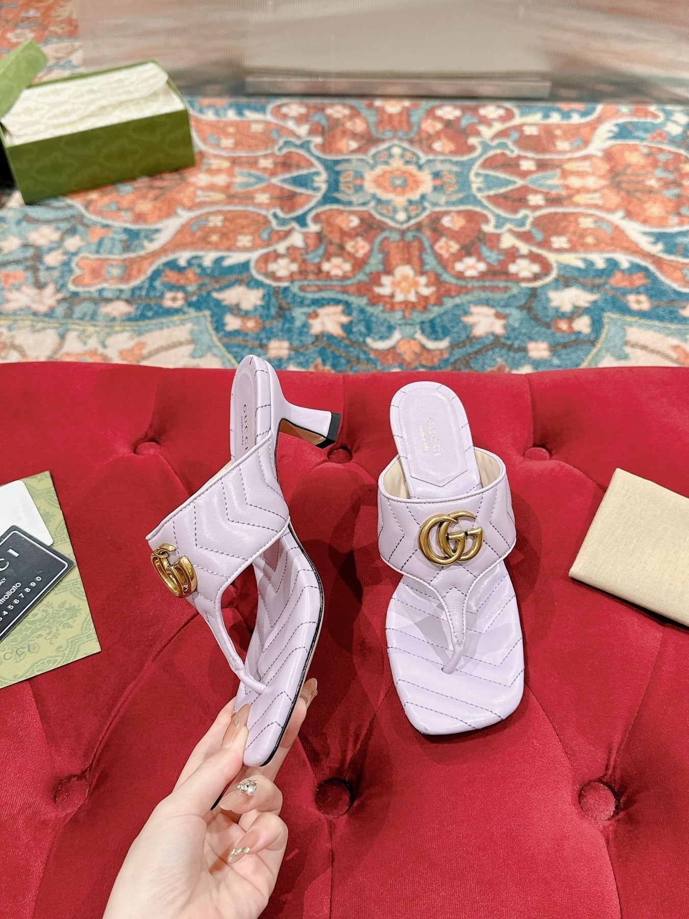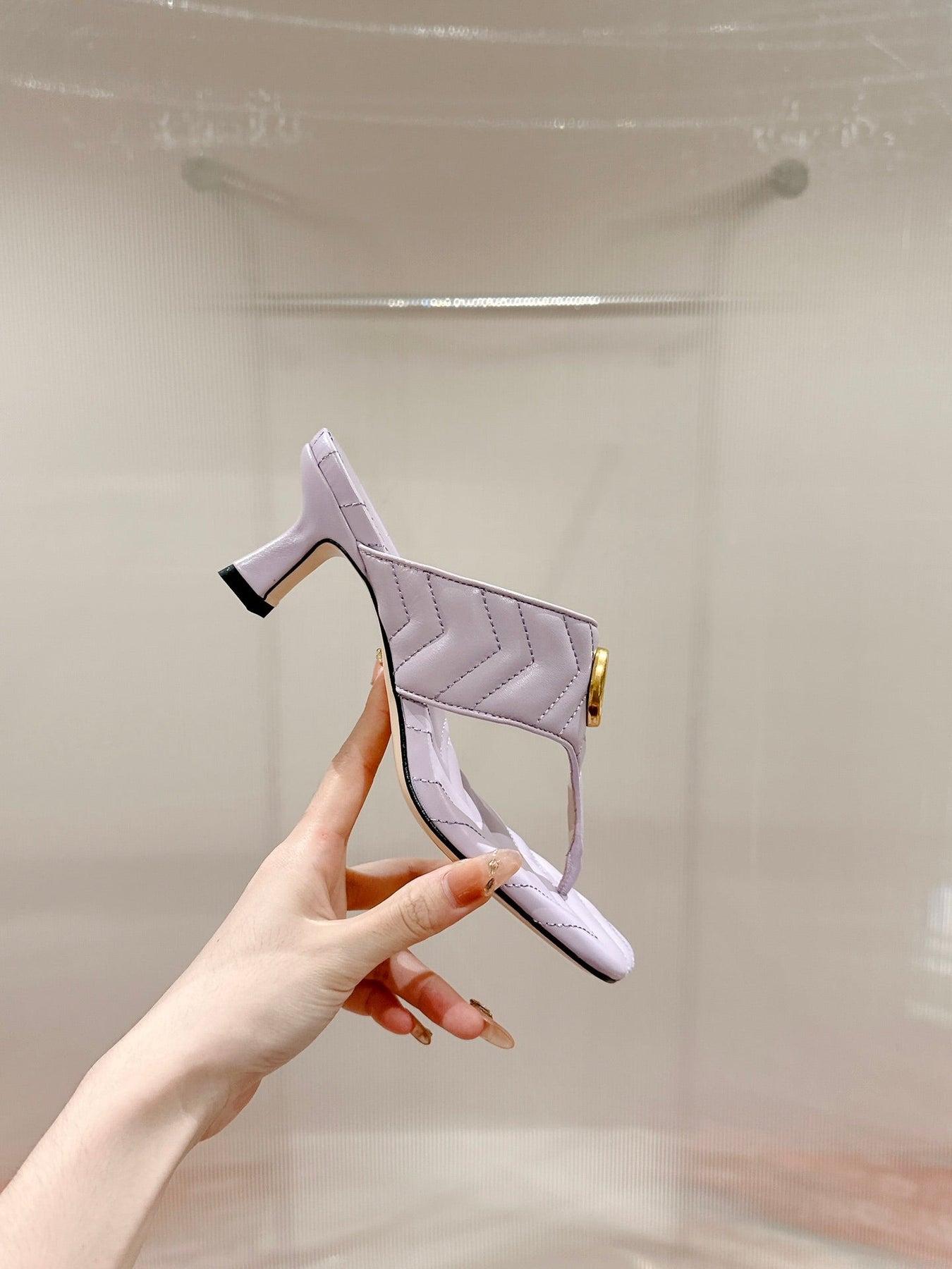 HIGH THONG MULE 55MM IN LIGHT PINK CALFSKIN WITH GOLD HARDWARE