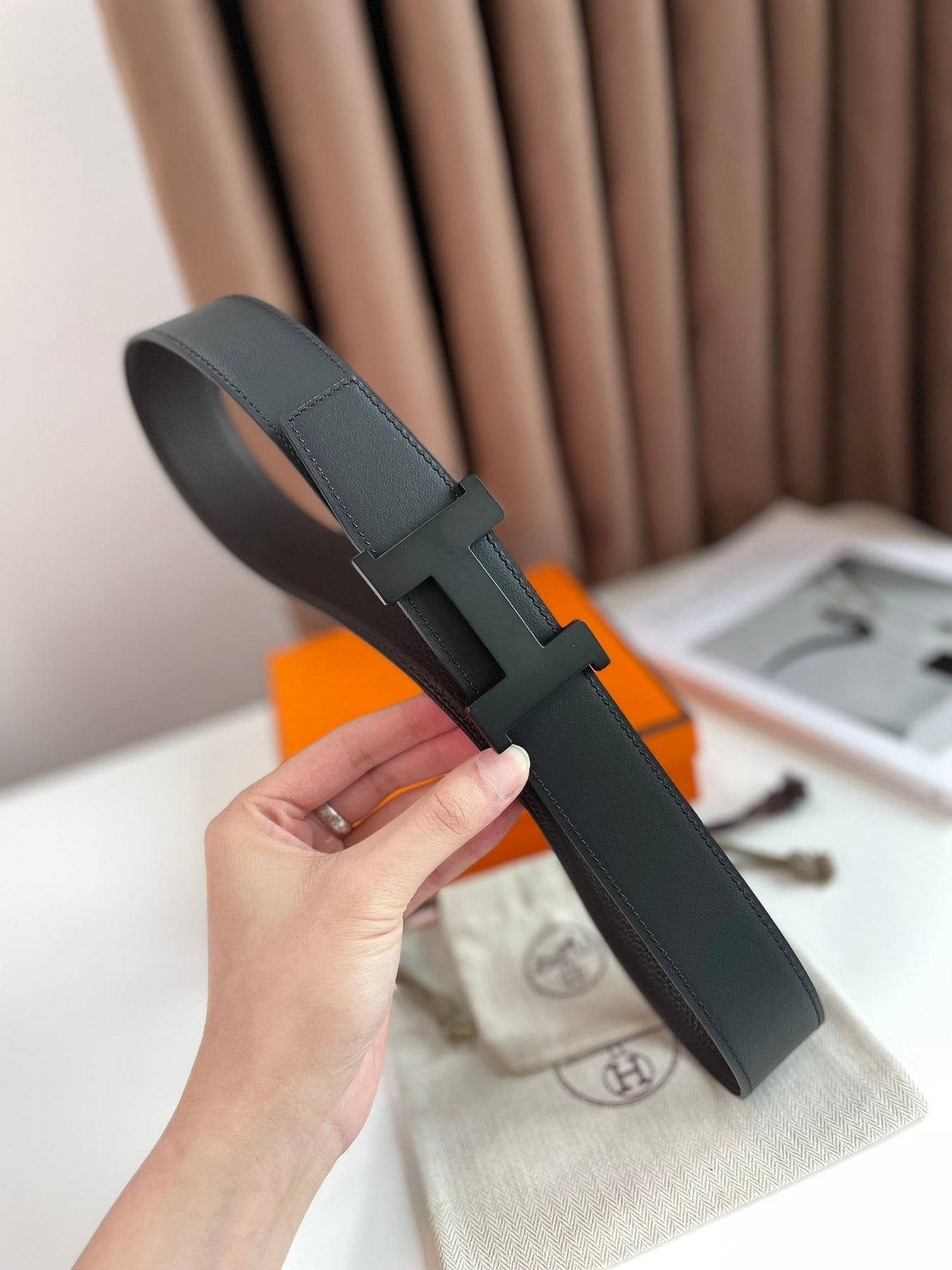 HM CONSTANCE BELT BUCKLE & REVERSIBLE CHOCOLATE BROWN AND BLACK LEATHER STRAP 38MM