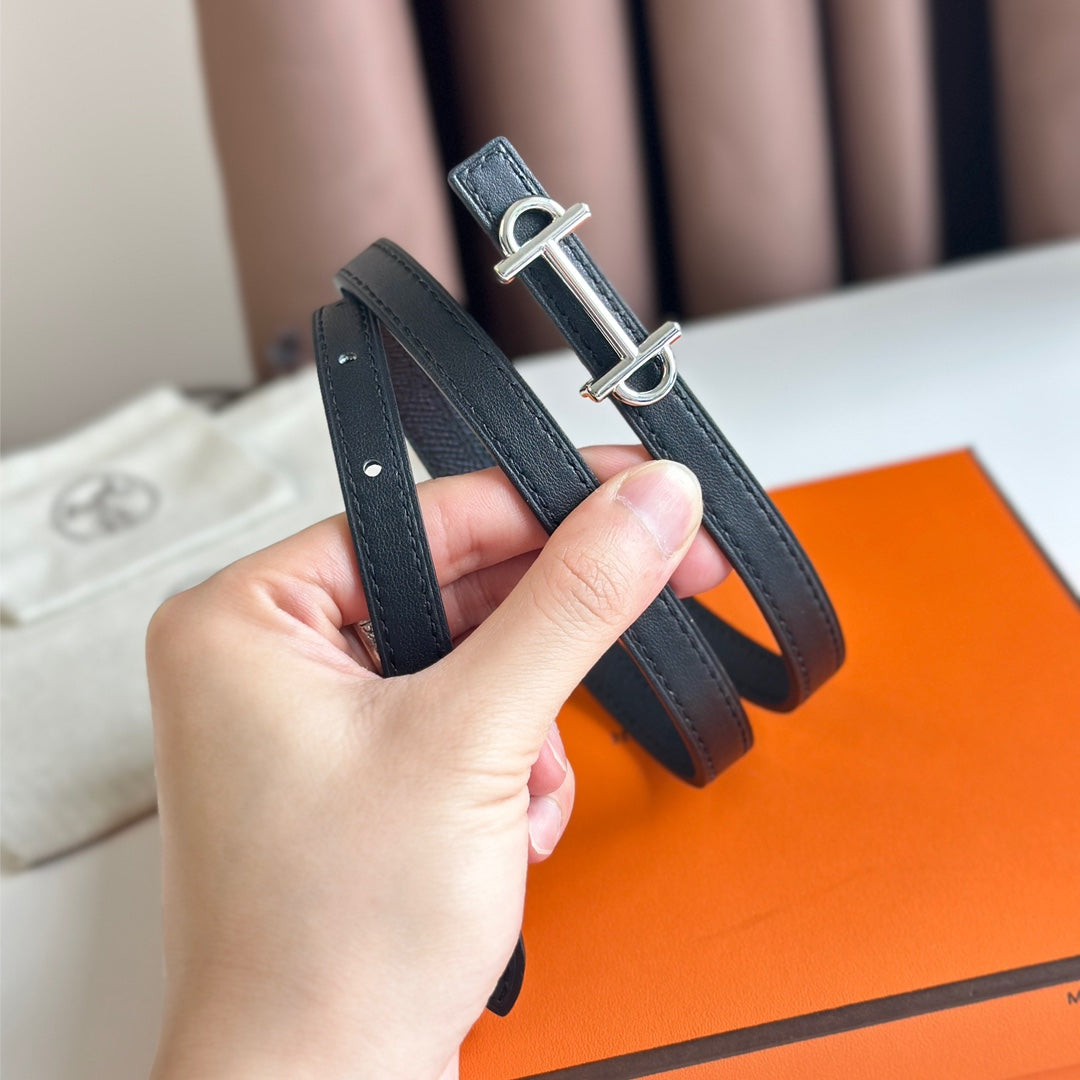 HM GAMMA BUCKLE & REVERSIBLE BLACK LEATHER STRAP 13MM SILVER HARDWARE