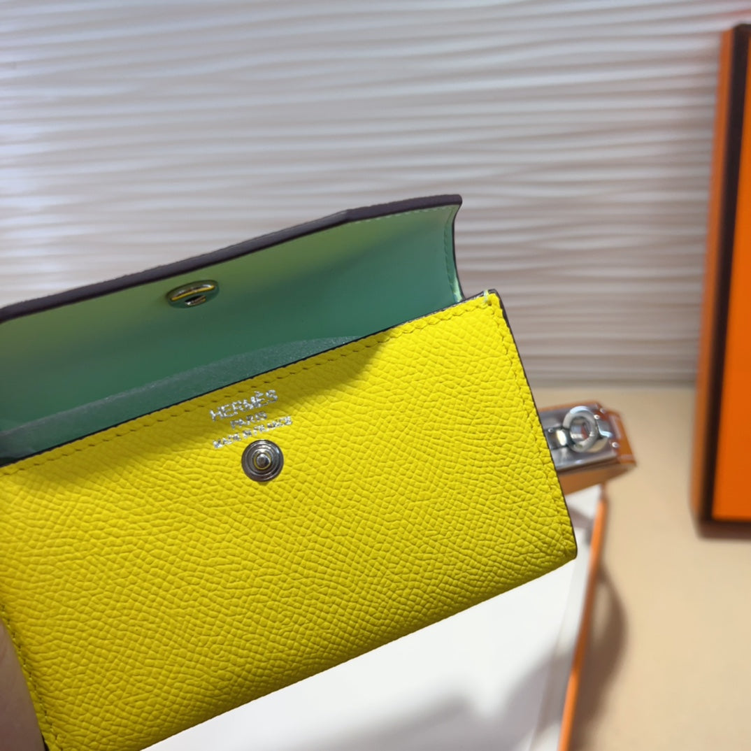 HM KELLY LEMON YELLOW POCKET 18MM BELT CINNAMON BROWN LEATHER SILVER HARDWARE