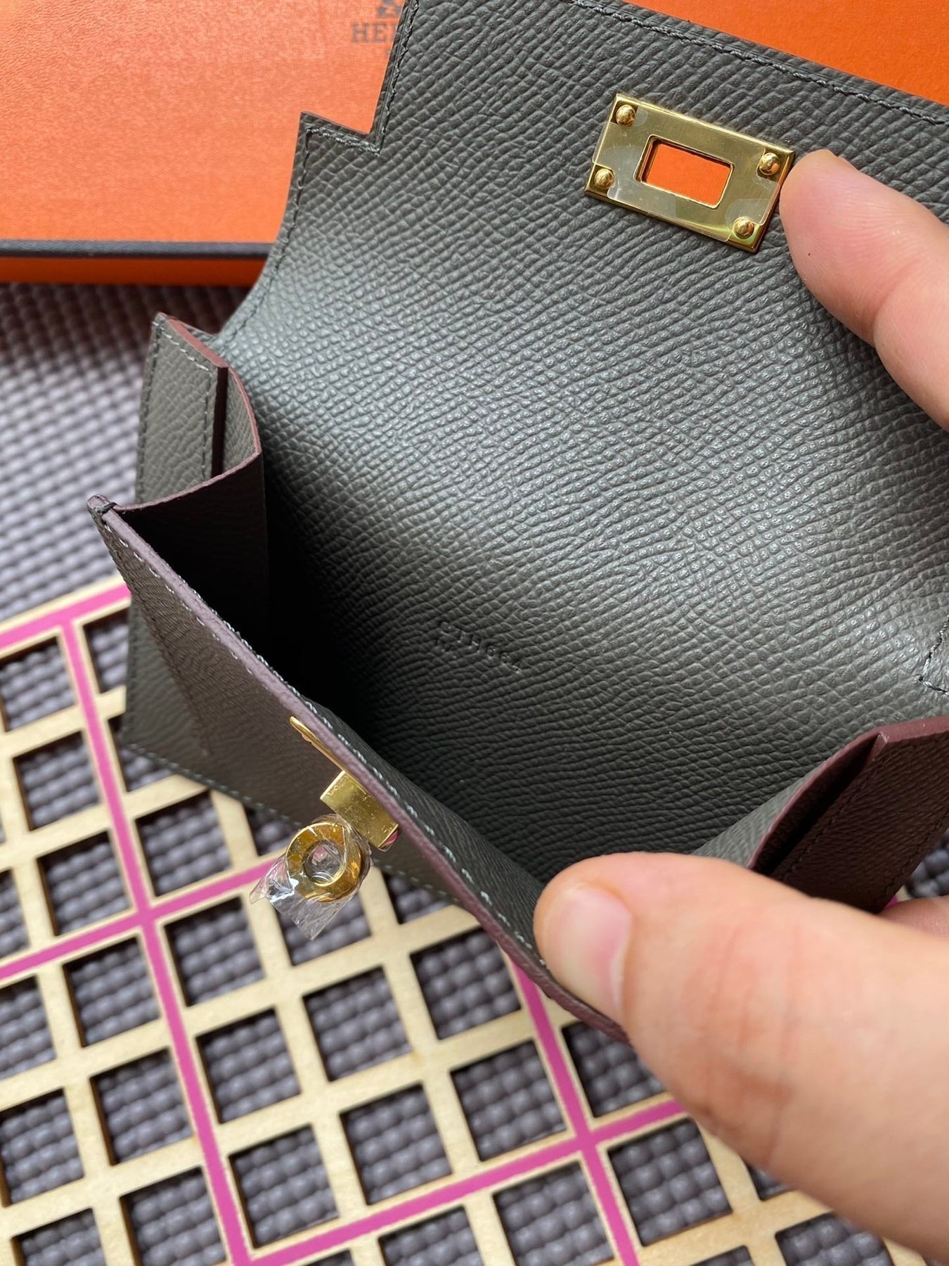 HM Kelly Pocket 13.5 Dark Grey Epsom Ghw