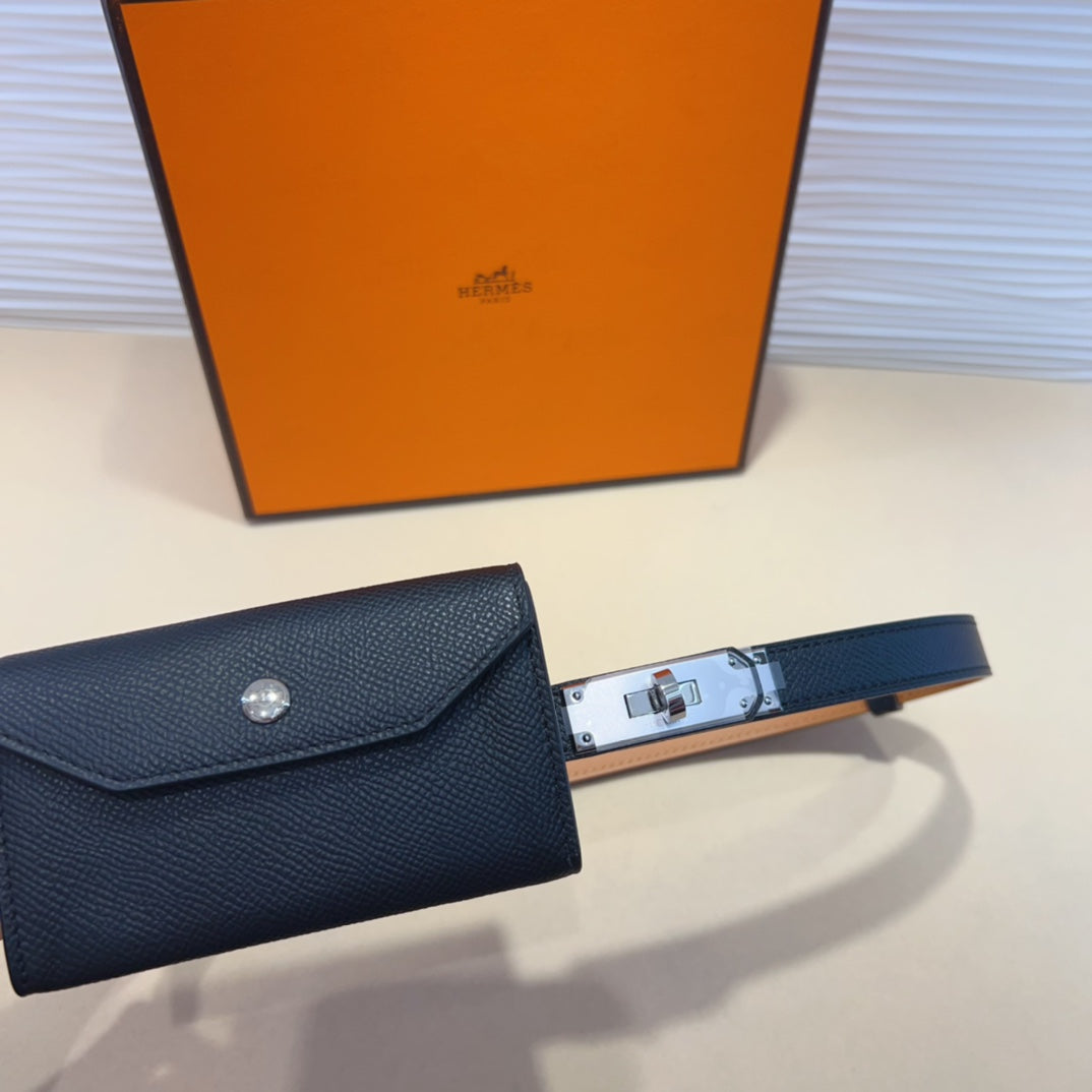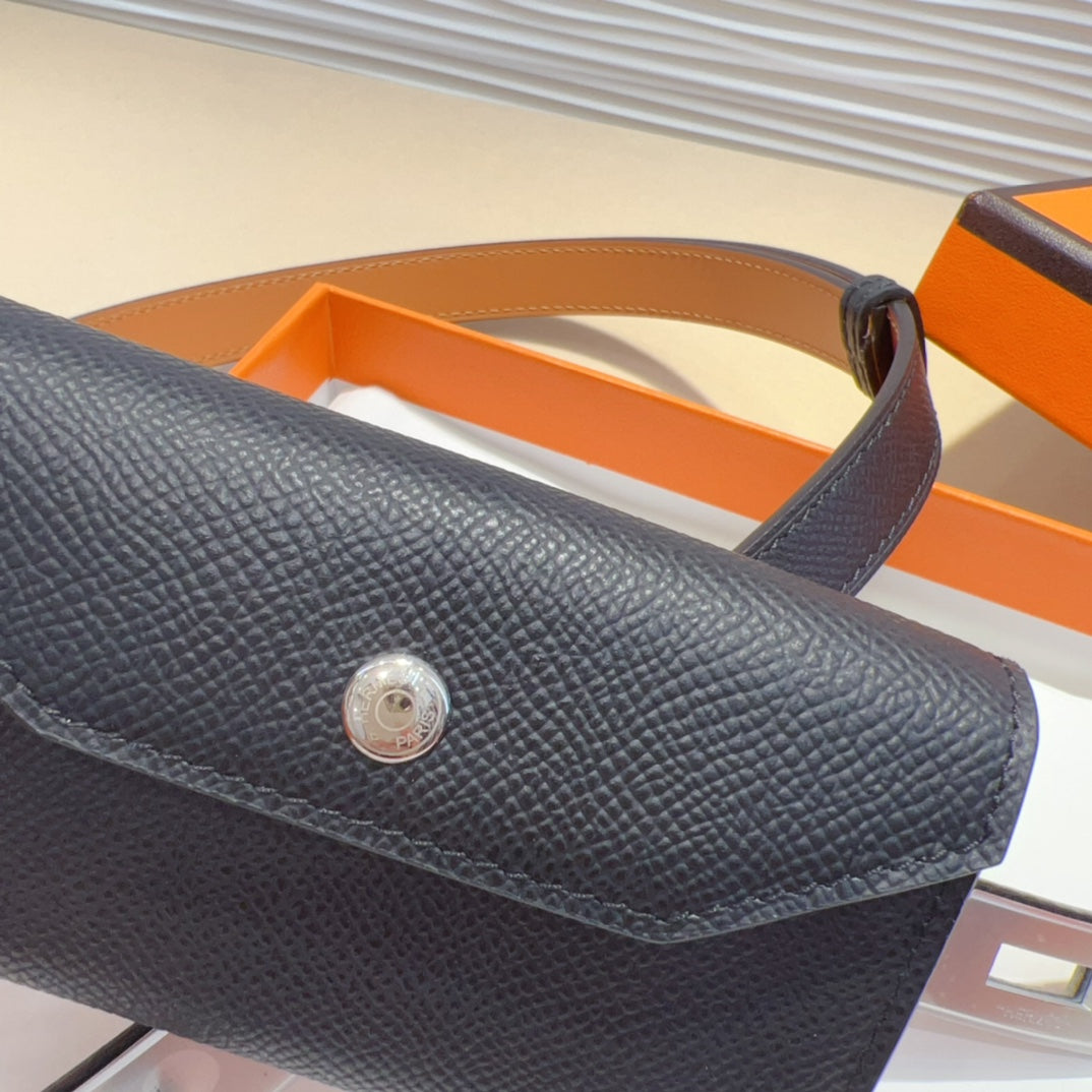 HM KELLY POCKET 18MM BELT BLACK LEATHER SILVER HARDWARE