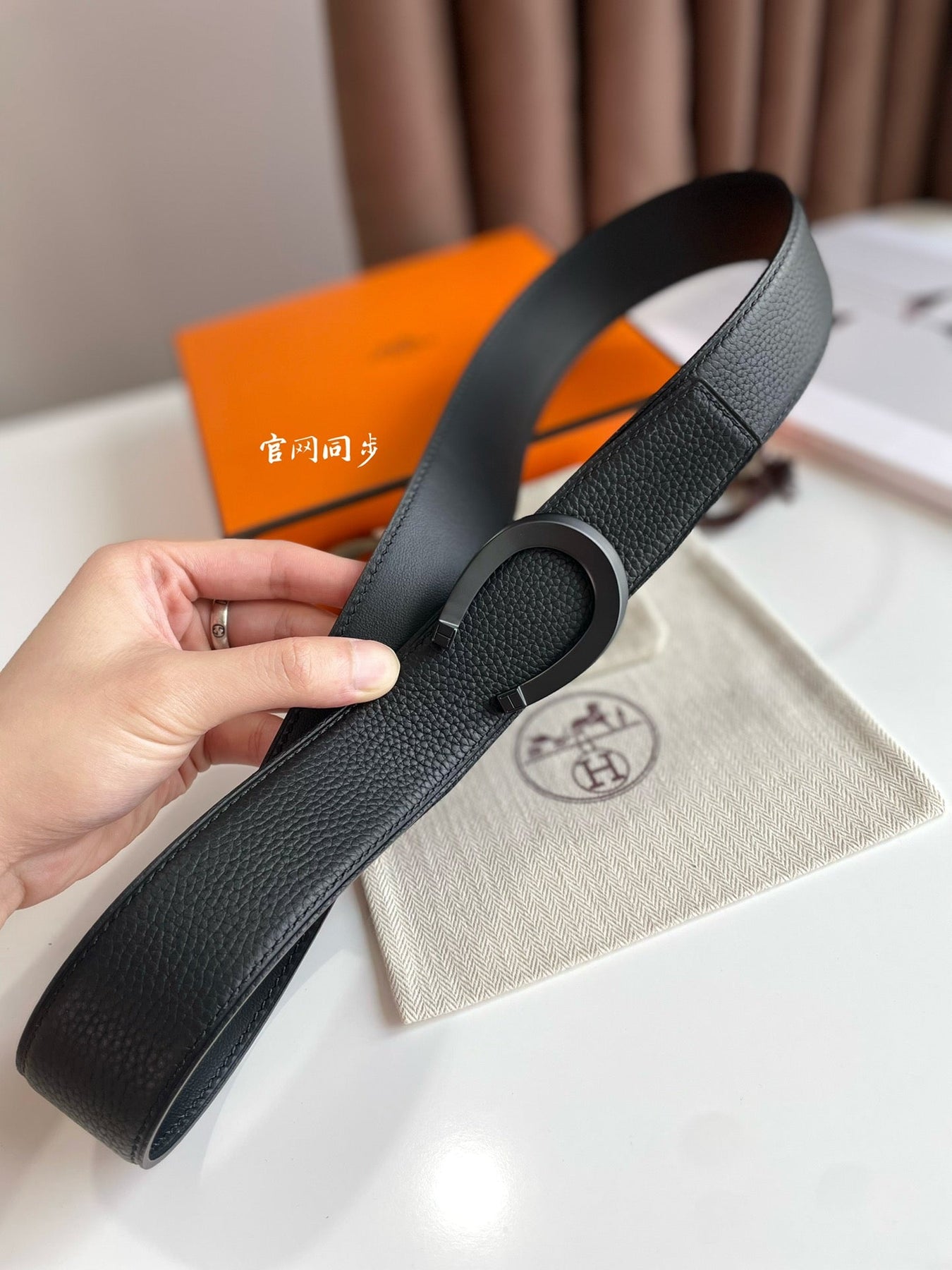 HM LUCK BELT BUCKLE & REVERSIBLE BLACK LEATHER STRAP 38MM