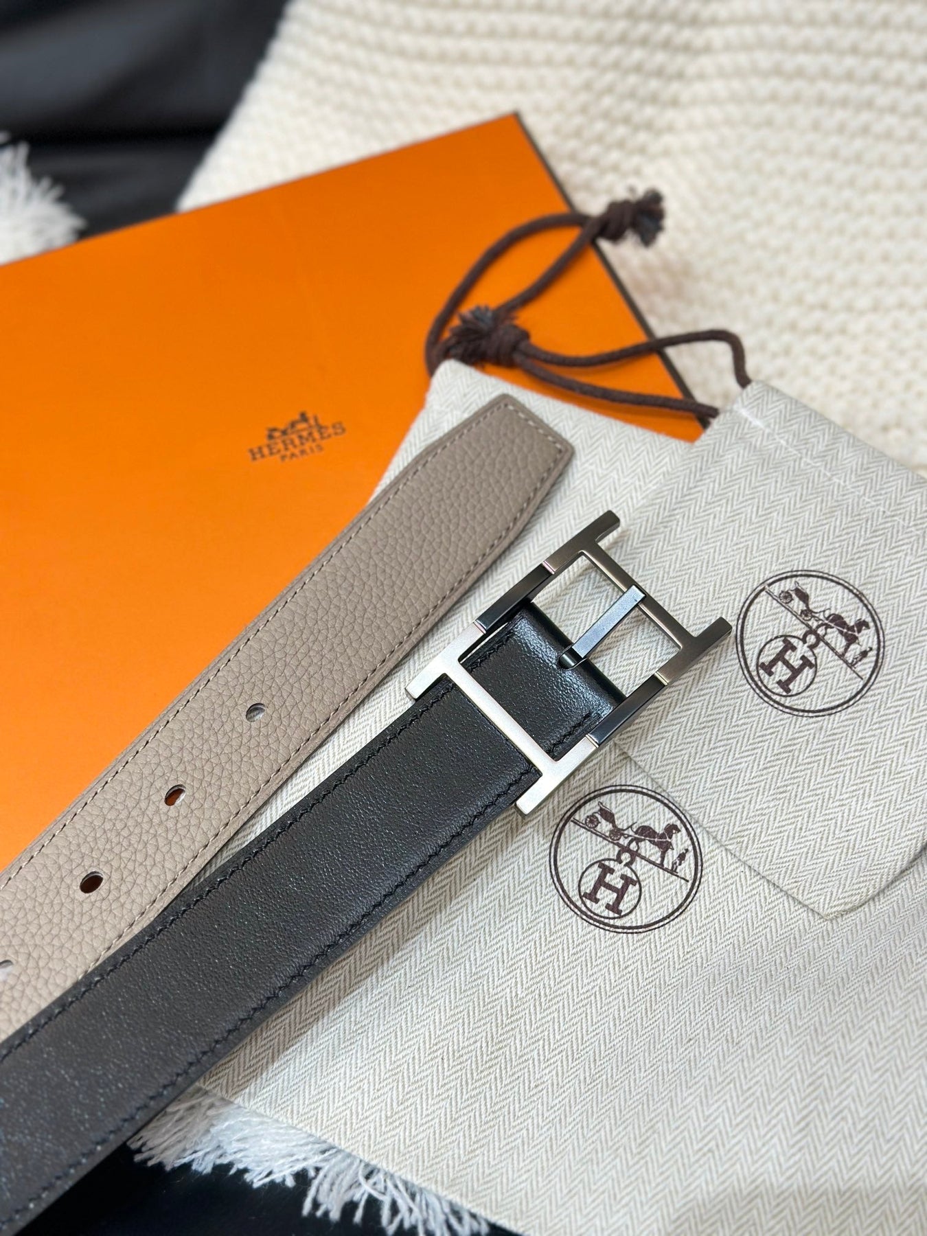 HM NEO TANDEM 32MM REVERSIBLE BELT BLACK AND TAN LEATHER SILVER BUCKLE