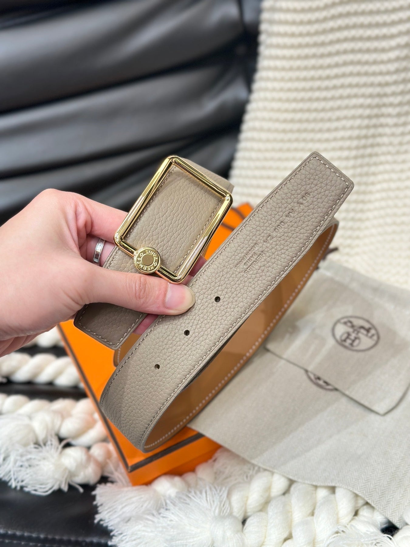 HM OSCAR BELT GOLD BUCKLE & REVERSIBLE HONEY ORANGE LEATHER STRAP 38MM