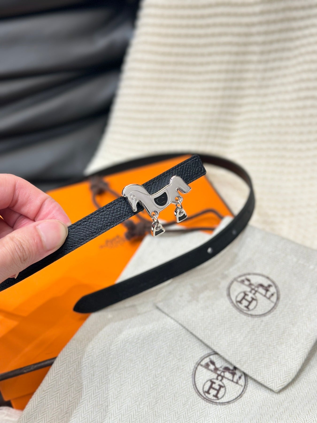 HM ROULIS SILVER BUCKLE & REVERSIBLE BLACK LEATHER STRAP 13MM