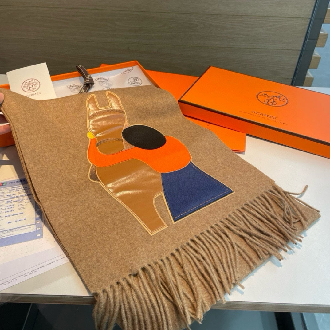 HORSE HUG SCARF 200 CM IN MEDIUM BROWN CASHMERE 394476