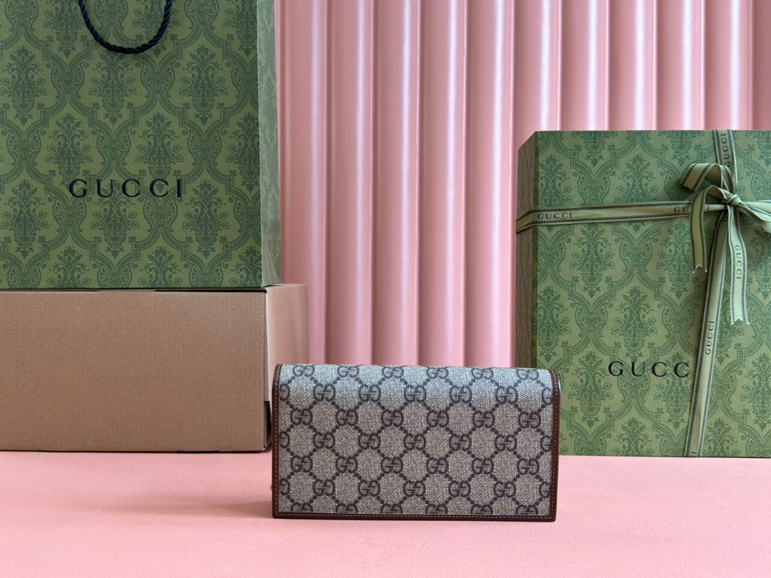 HORSEBIT 1955 WALLET IN BEIGE EBONY CANVAS MIX BROWN CALFSKIN GOLD CHAIN