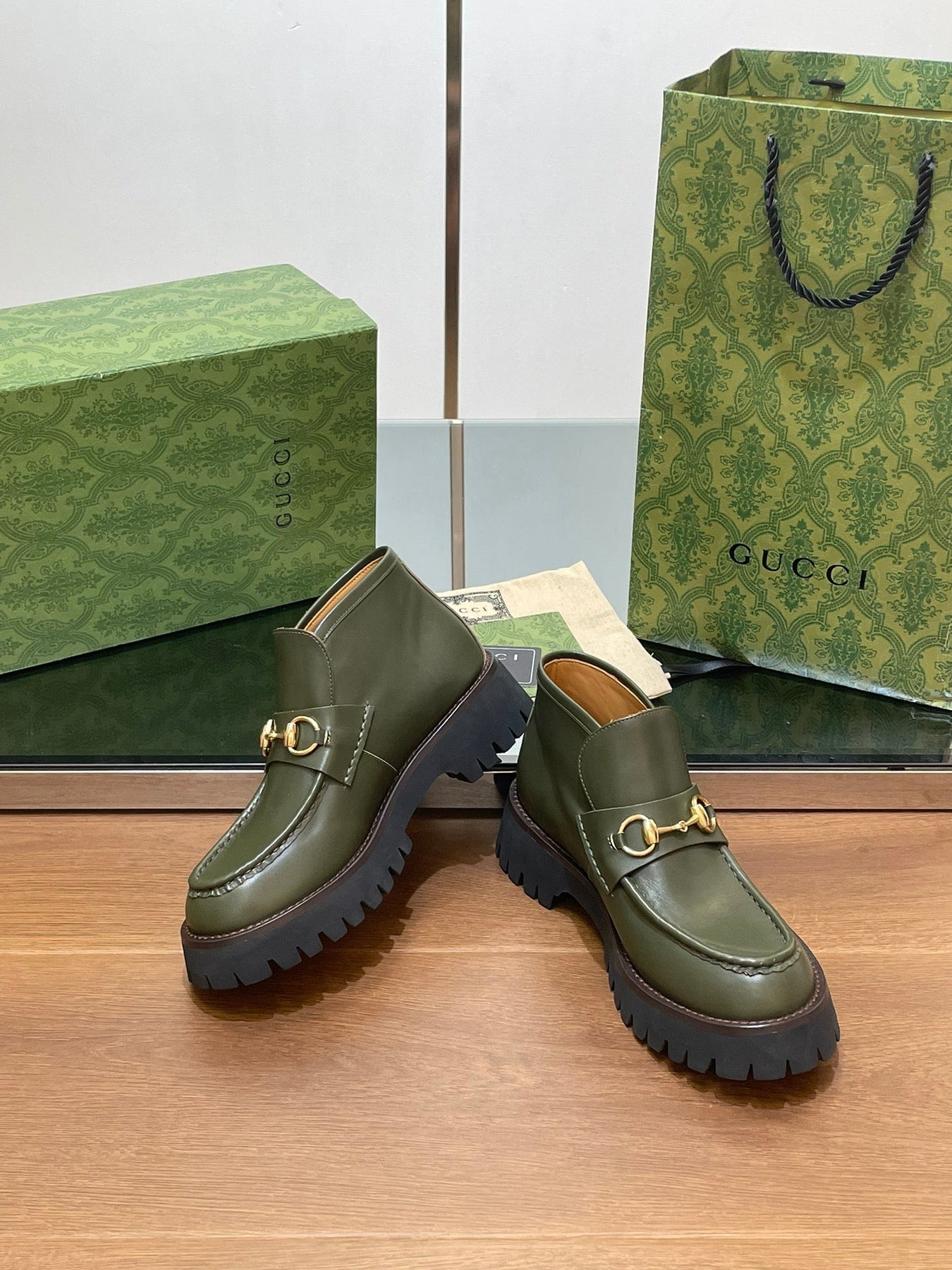 HORSEBIT ANKLE BOOTS 4.5CM IN ARMY GREEN CALFSKIN