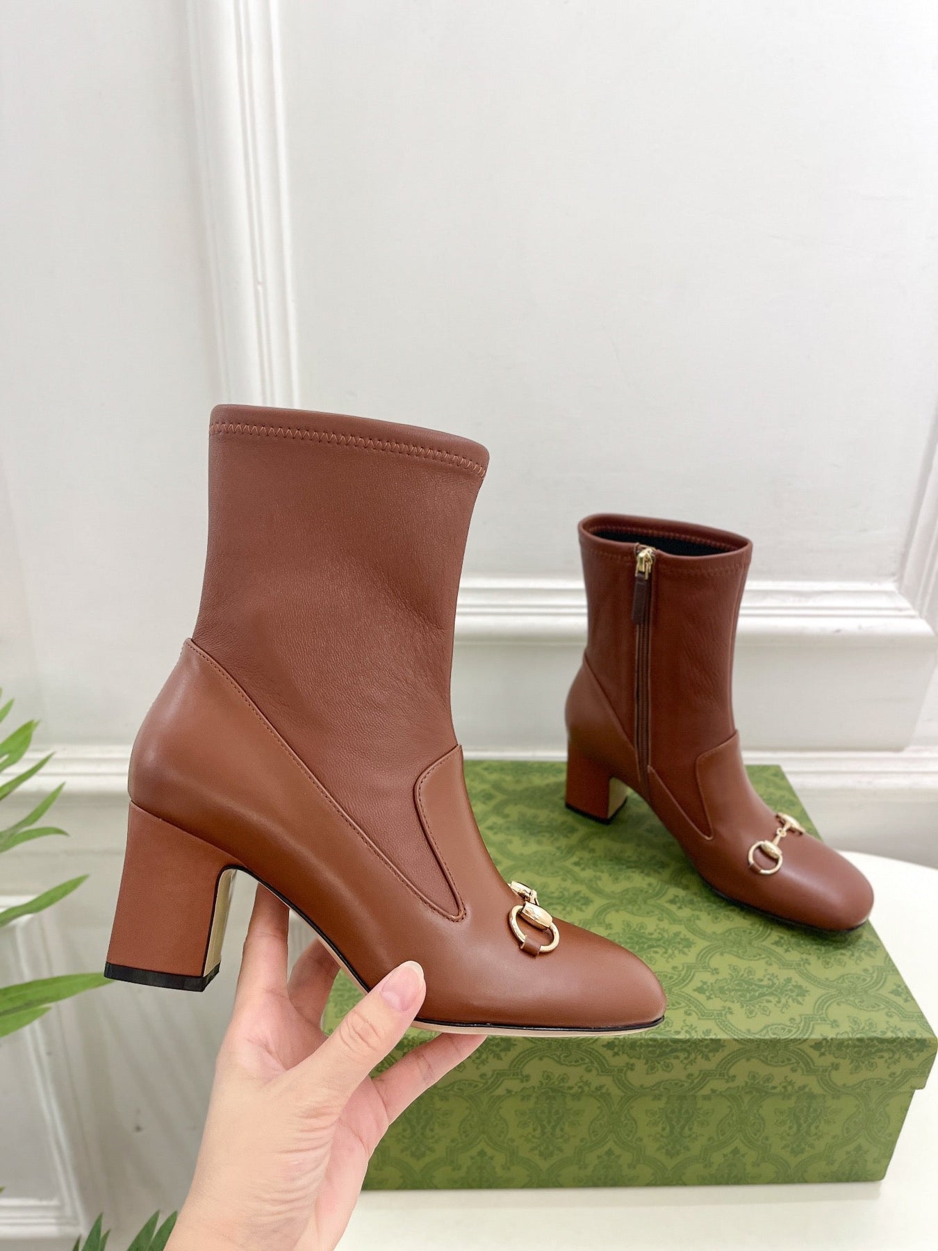 HORSEBIT ANKLE BOOTS 6.5CM IN CINNAMON BROWN SHEEPSKIN