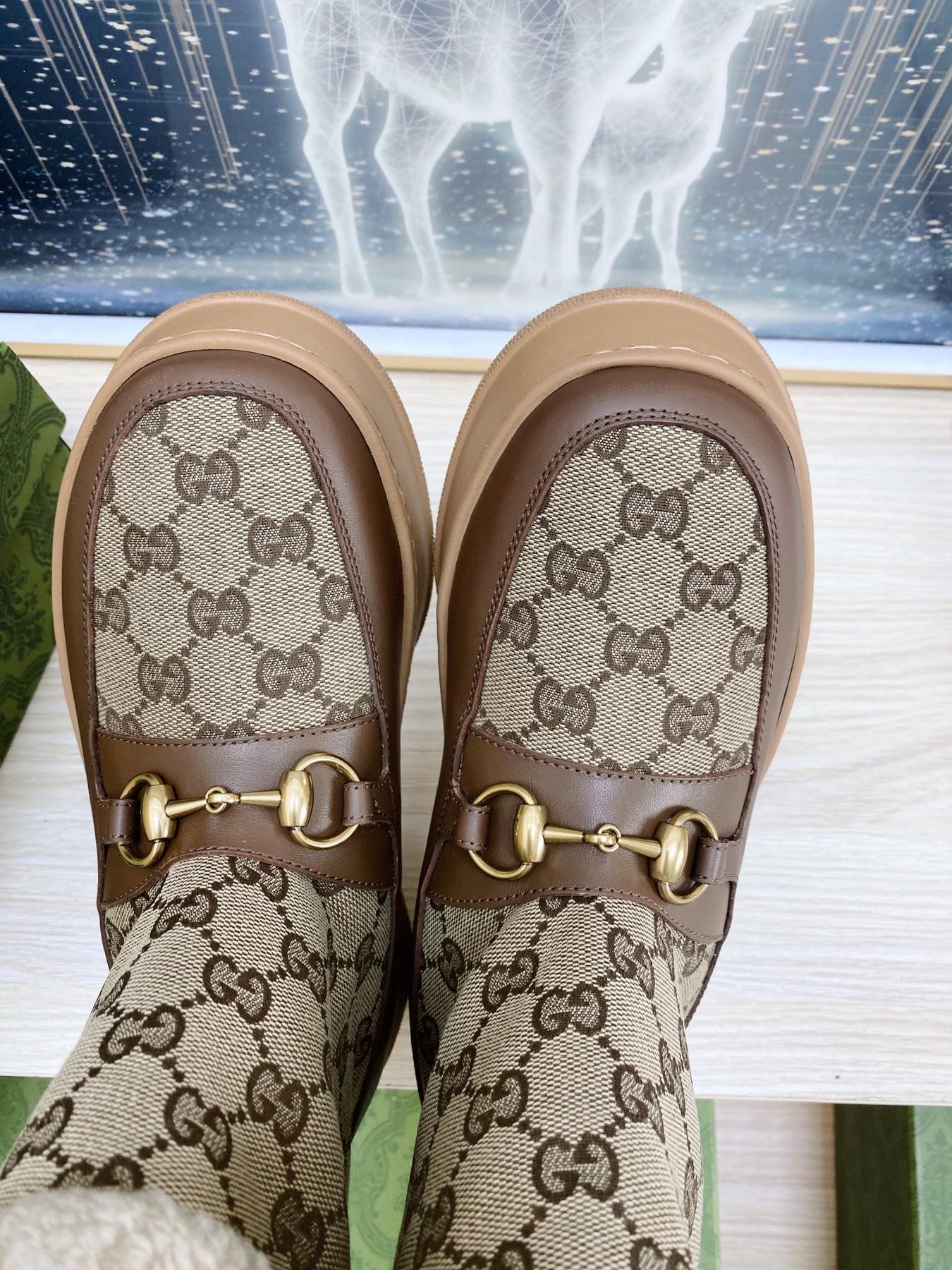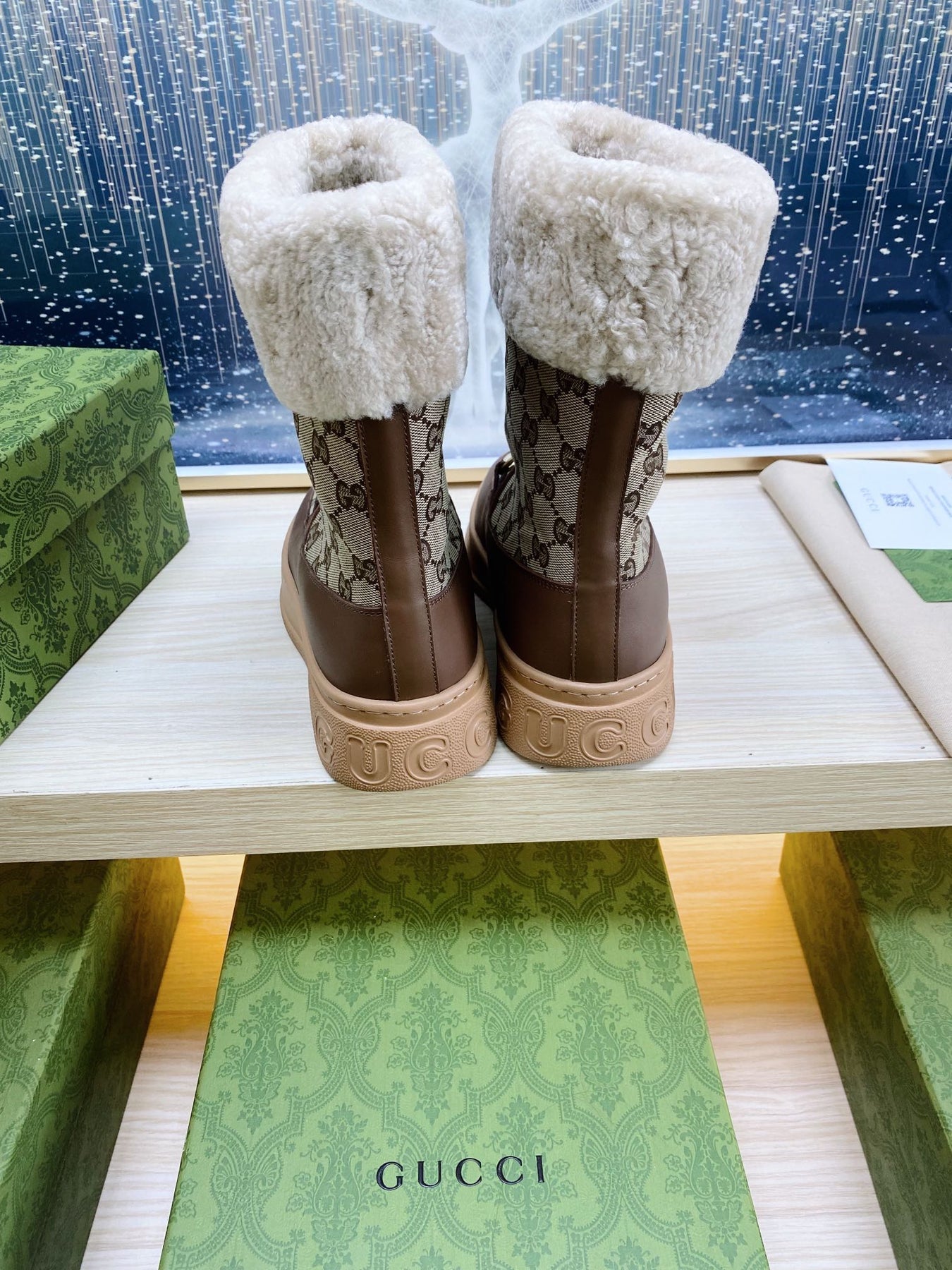 HORSEBIT ANKLE BOOTS WITH MERINO TRIM IN BEIGE JACQUARD FABRIC MIX BROWN CALFSKIN