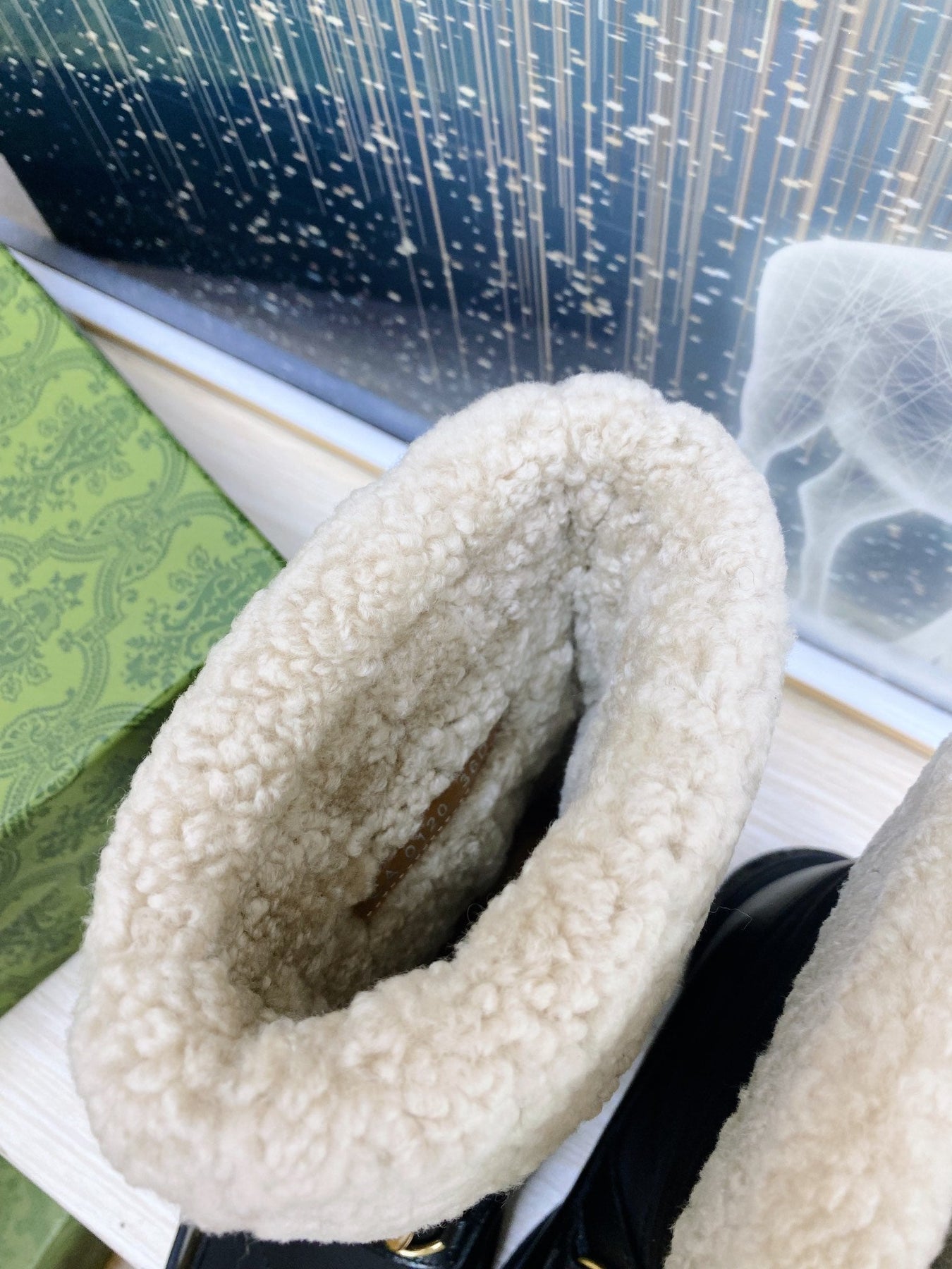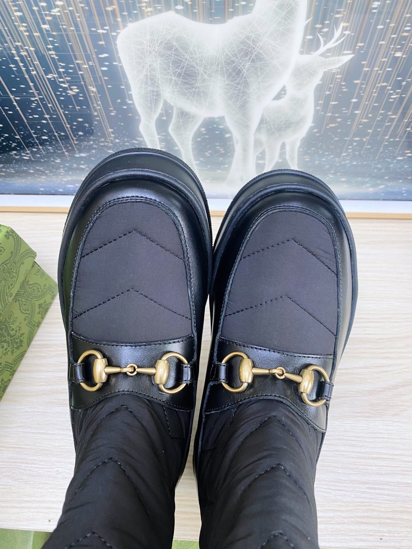 HORSEBIT ANKLE BOOTS WITH MERINO TRIM IN BLACK NYLON MIX CALFSKIN