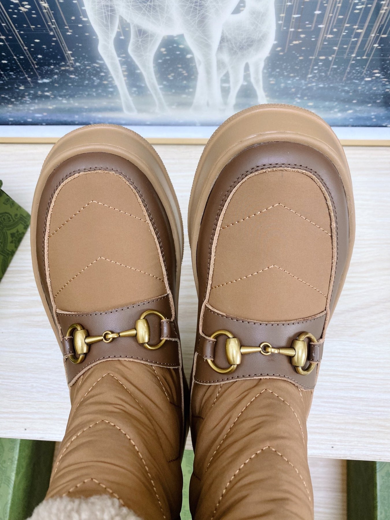 HORSEBIT ANKLE BOOTS WITH MERINO TRIM IN BROWN NYLON MIX CALFSKIN