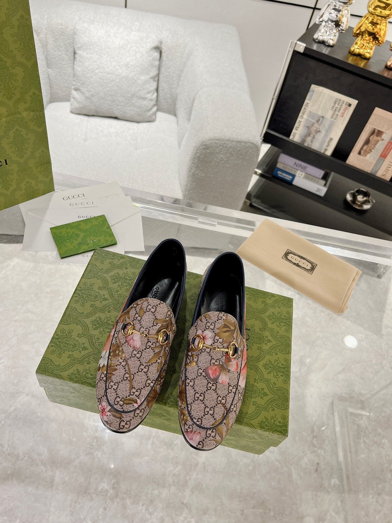 HORSEBIT LOAFER WITH FLOWER PRINT IN DARK BEIGE MONOGRAM JACQUARD FABRIC