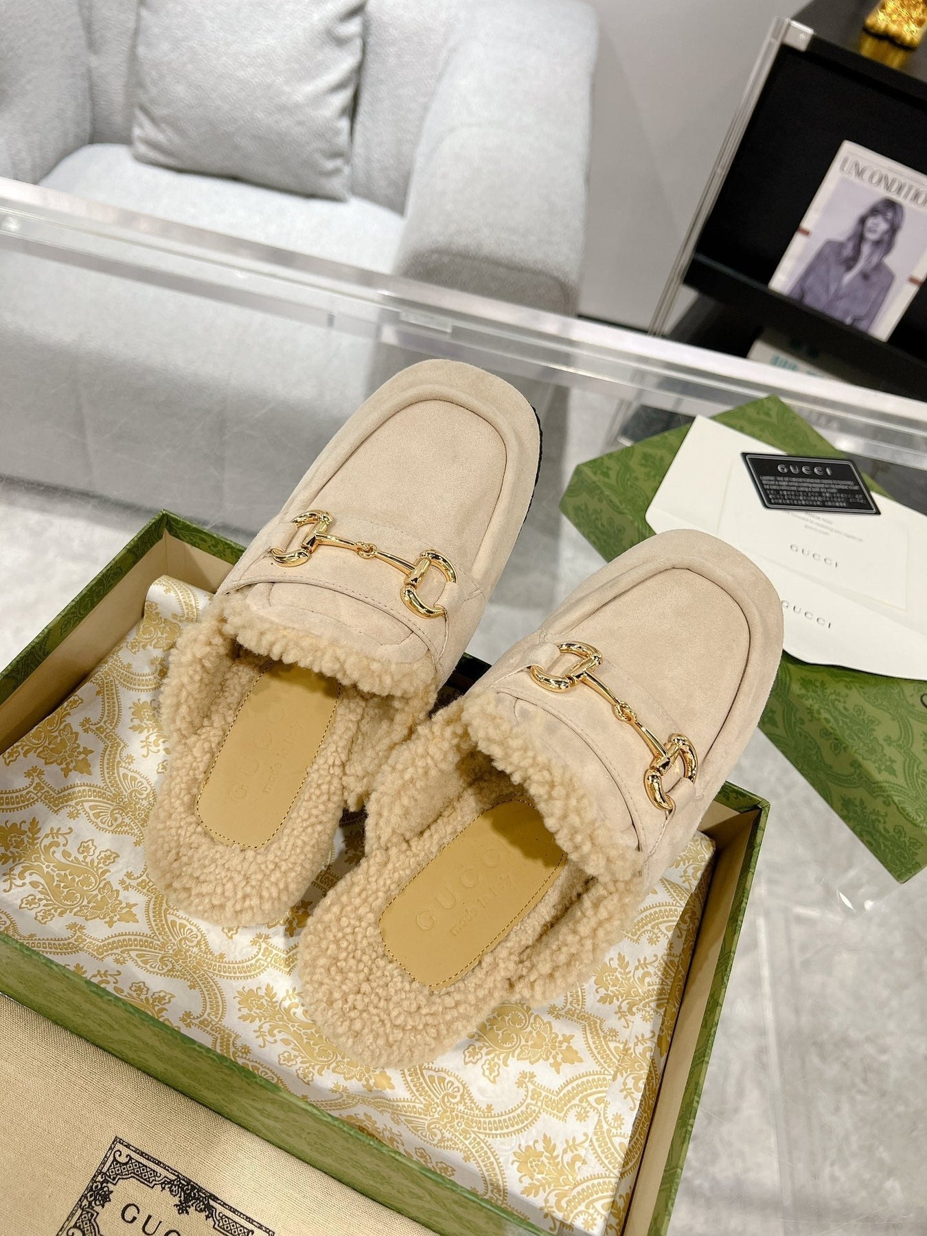 HORSEBIT MULE IN BEIGE SUEDE AND FLEECE LINING