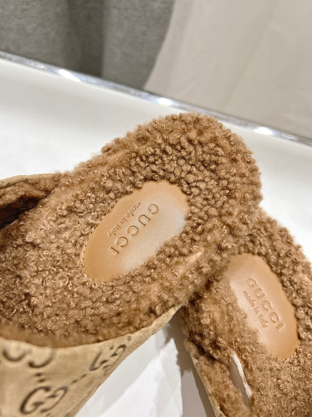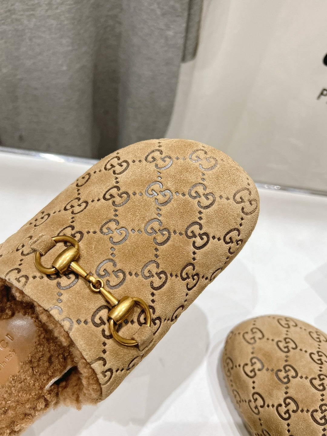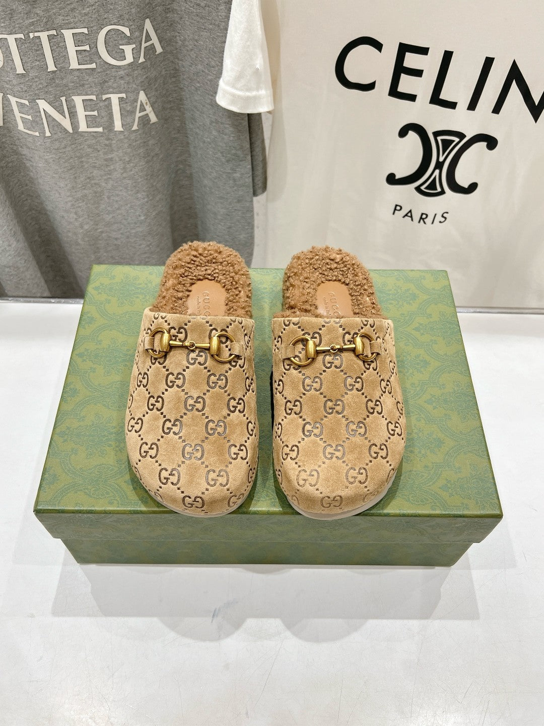 HORSEBIT MULE IN CAMEL EMBOSSED SUEDE AND FLEECE LINING