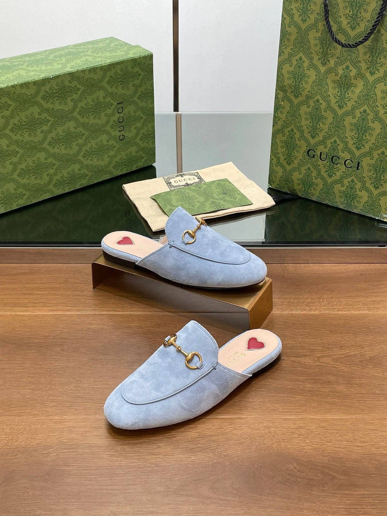 HORSEBIT MULE IN LIGHT BLUE SUEDE WITH GOLD HARDWARE
