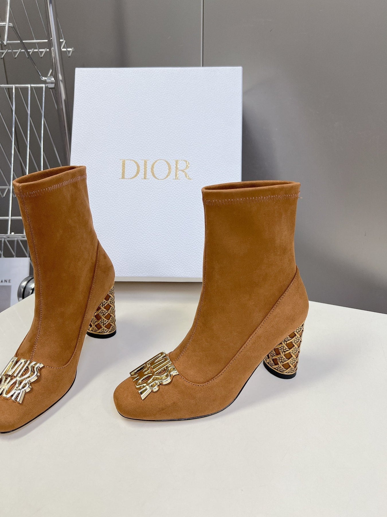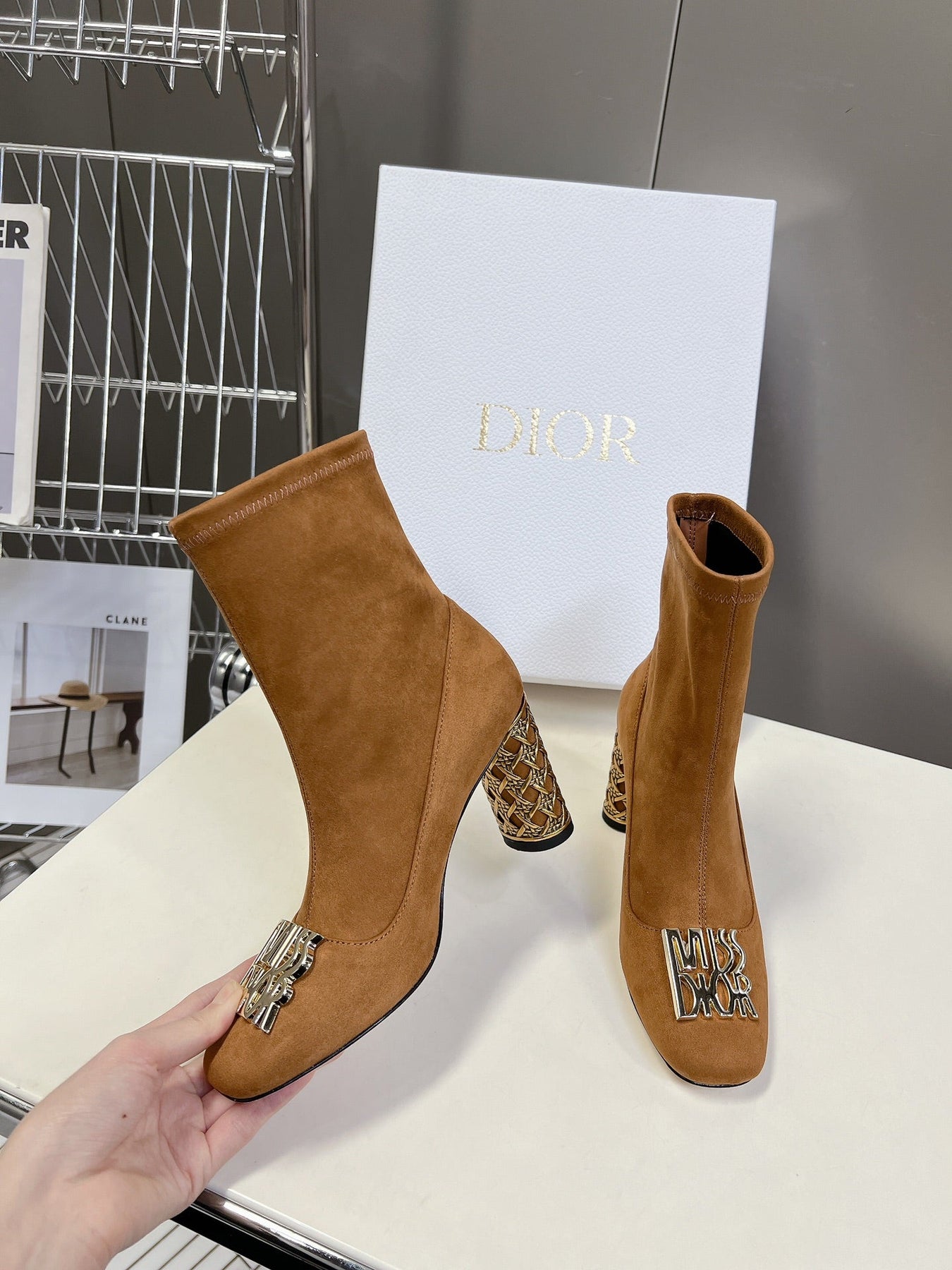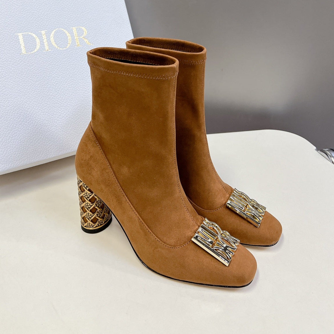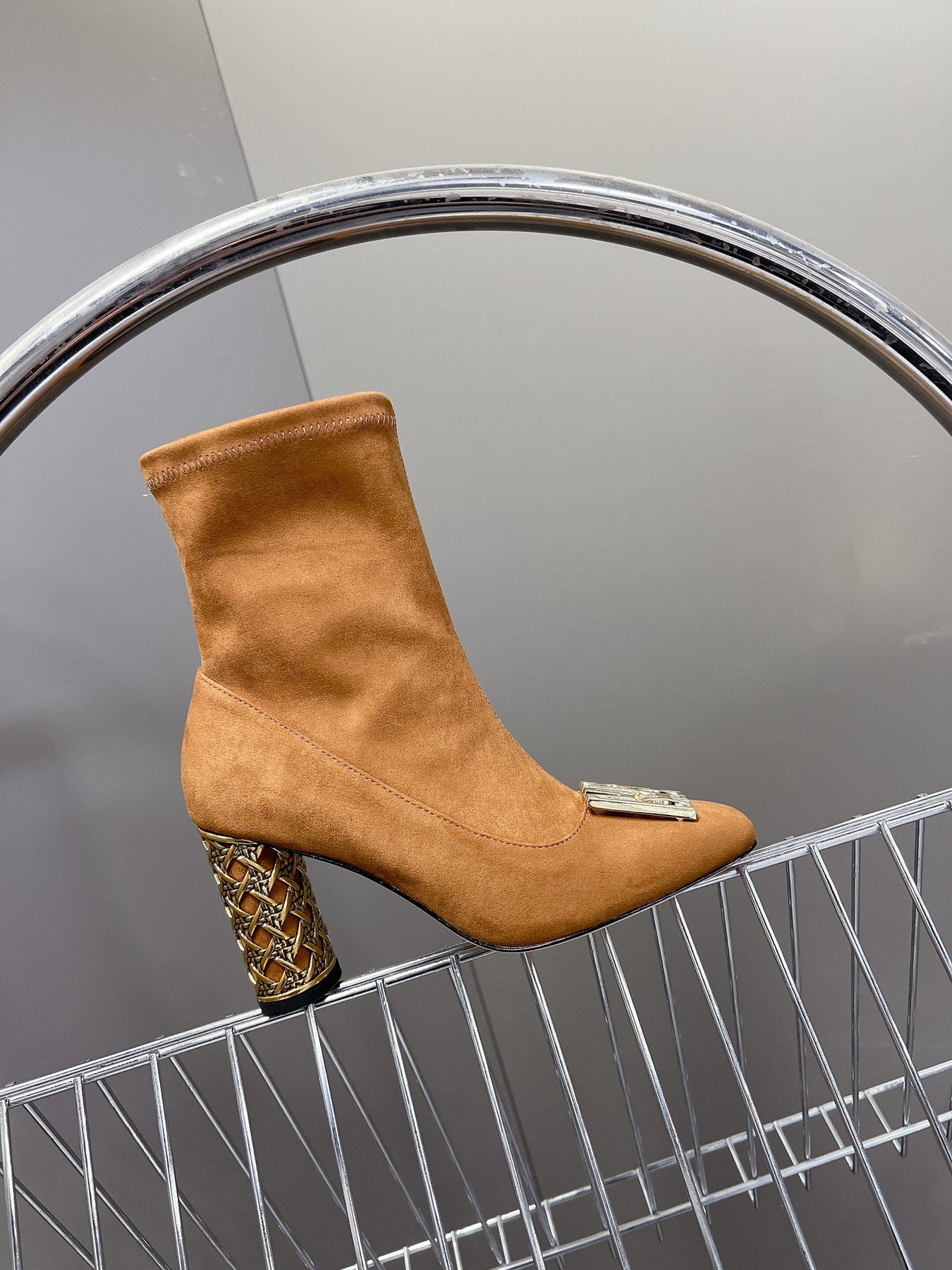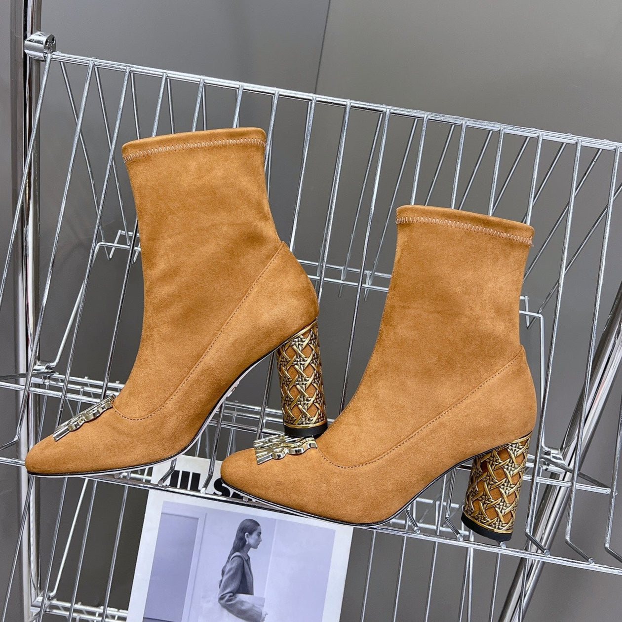 ICON HEELED ANKLE BOOT BRONZE BROWN SUEDE 8 CM WITH GOLD LOGO
