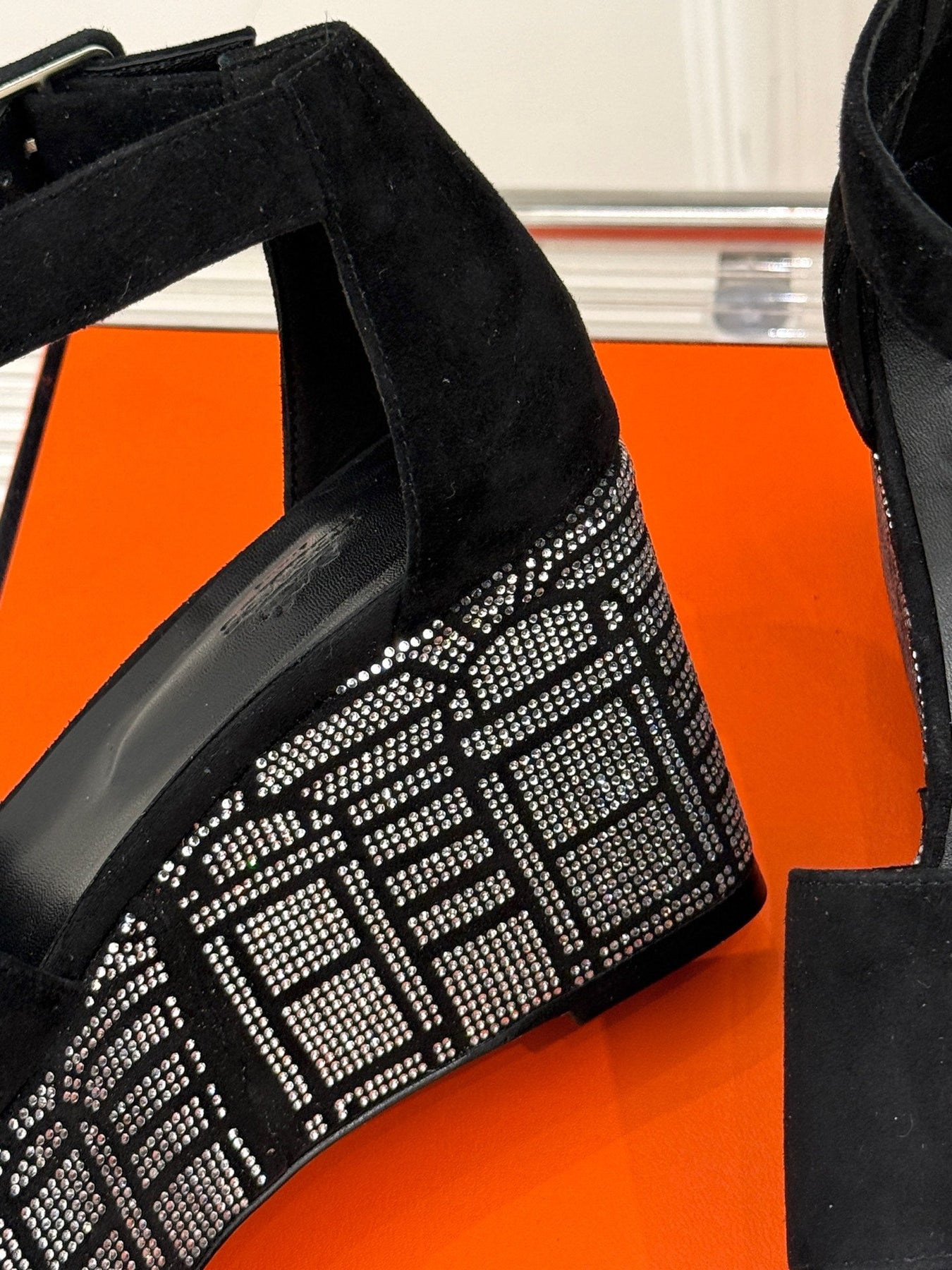 ILLUSION 35 SANDAL IN BLACK SUEDE WITH RHINESTONE DETAILS