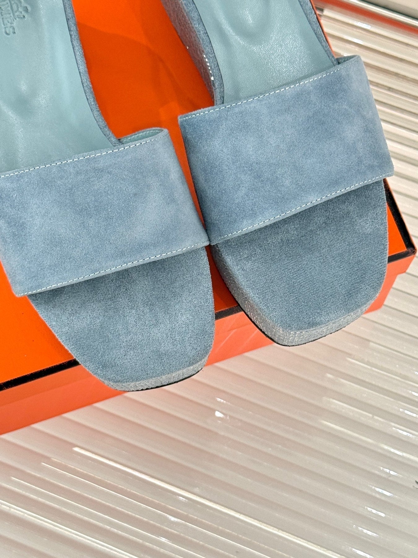 ILLUSION 35 SANDAL IN LIGHT BLUE SUEDE WITH RHINESTONE DETAILS