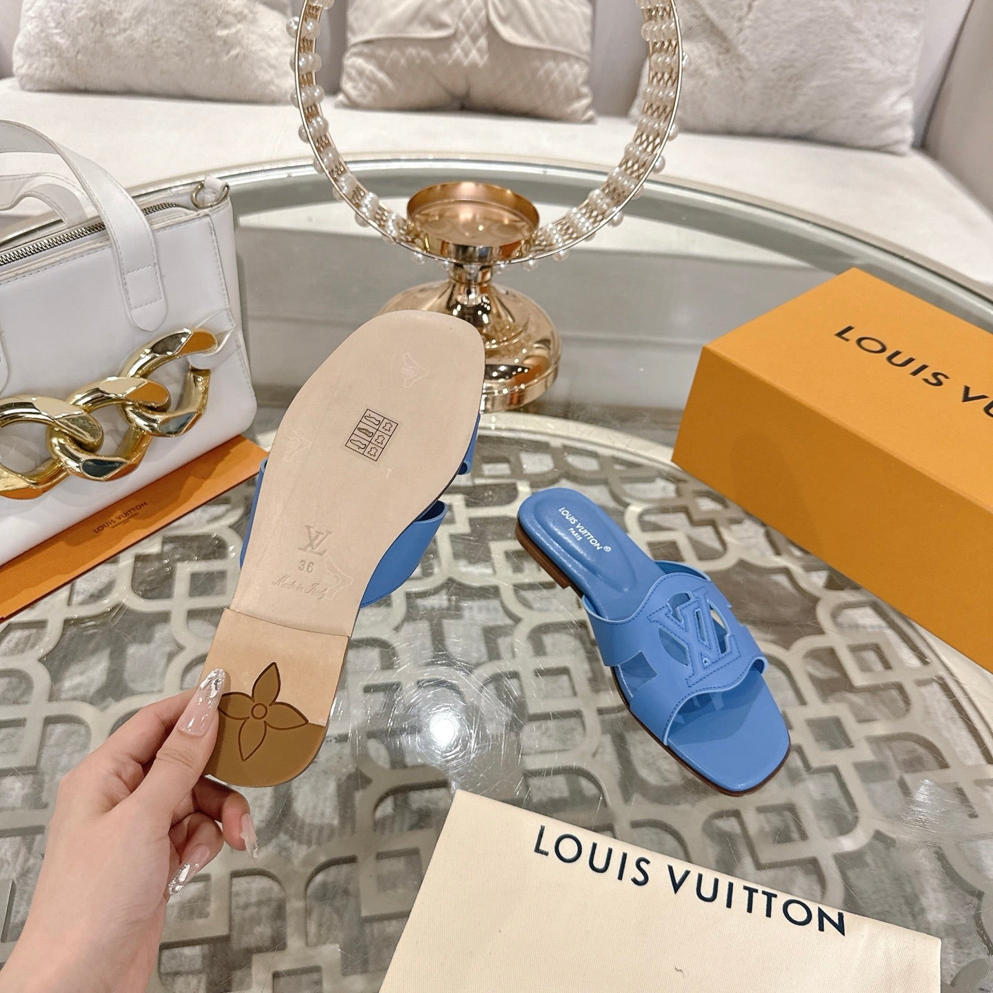 ISOLA FLAT SLIDE IN CORNFLOWER BLUE CALFSKIN