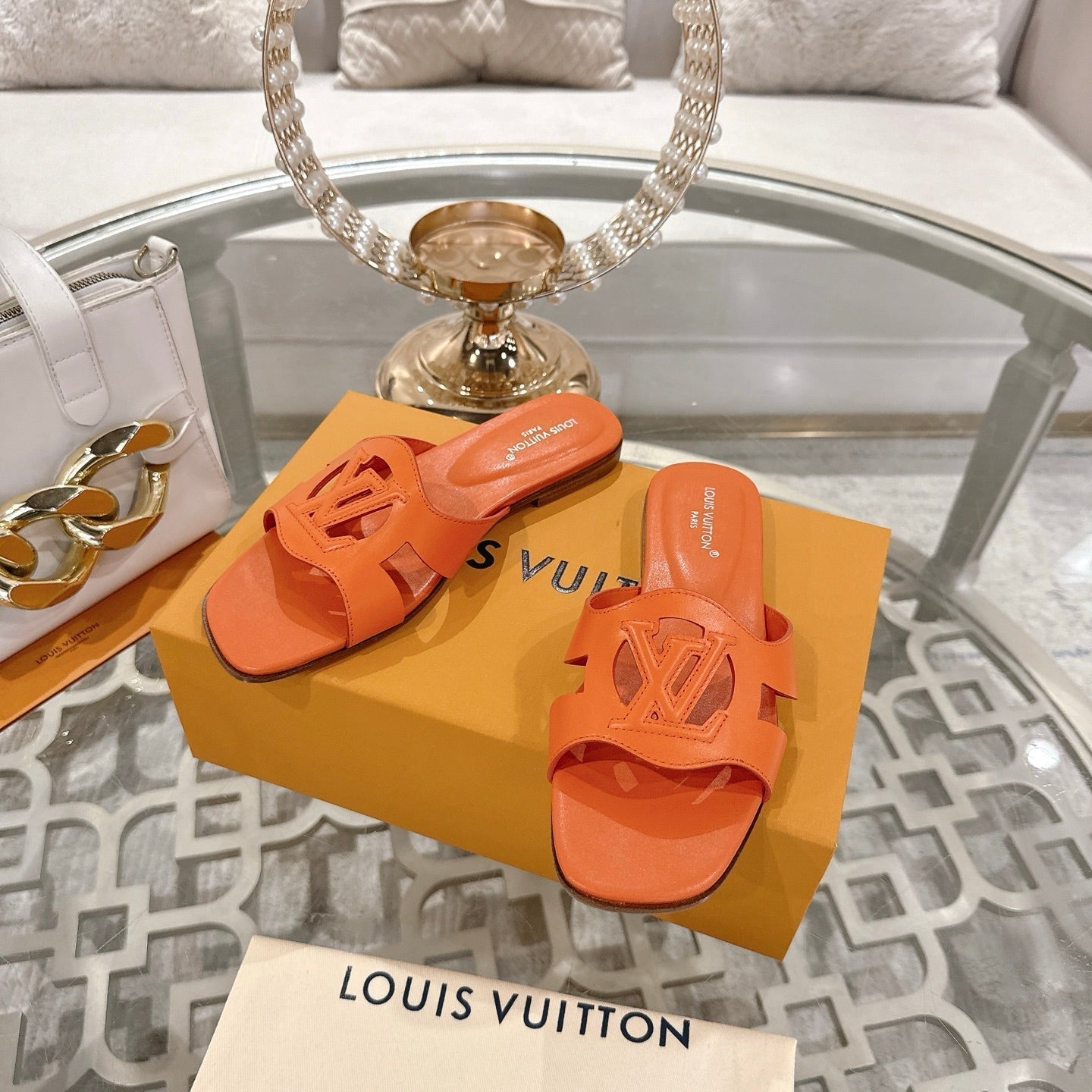 ISOLA FLAT SLIDE IN VIVID ORANGE CALFSKIN