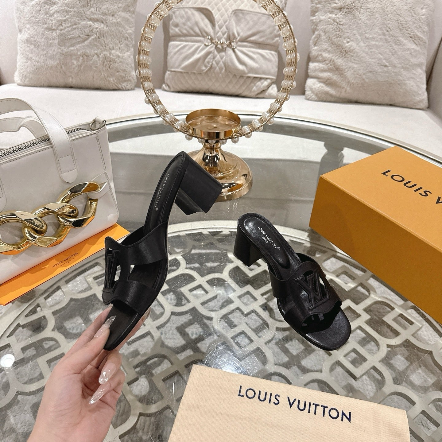ISOLA HIGH 55 MM MULE IN BLACK CALFSKIN