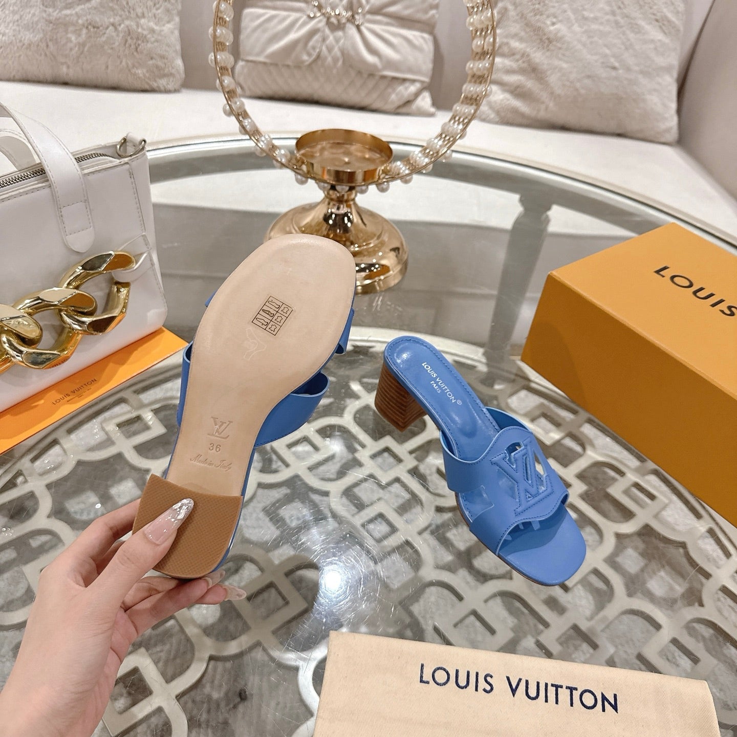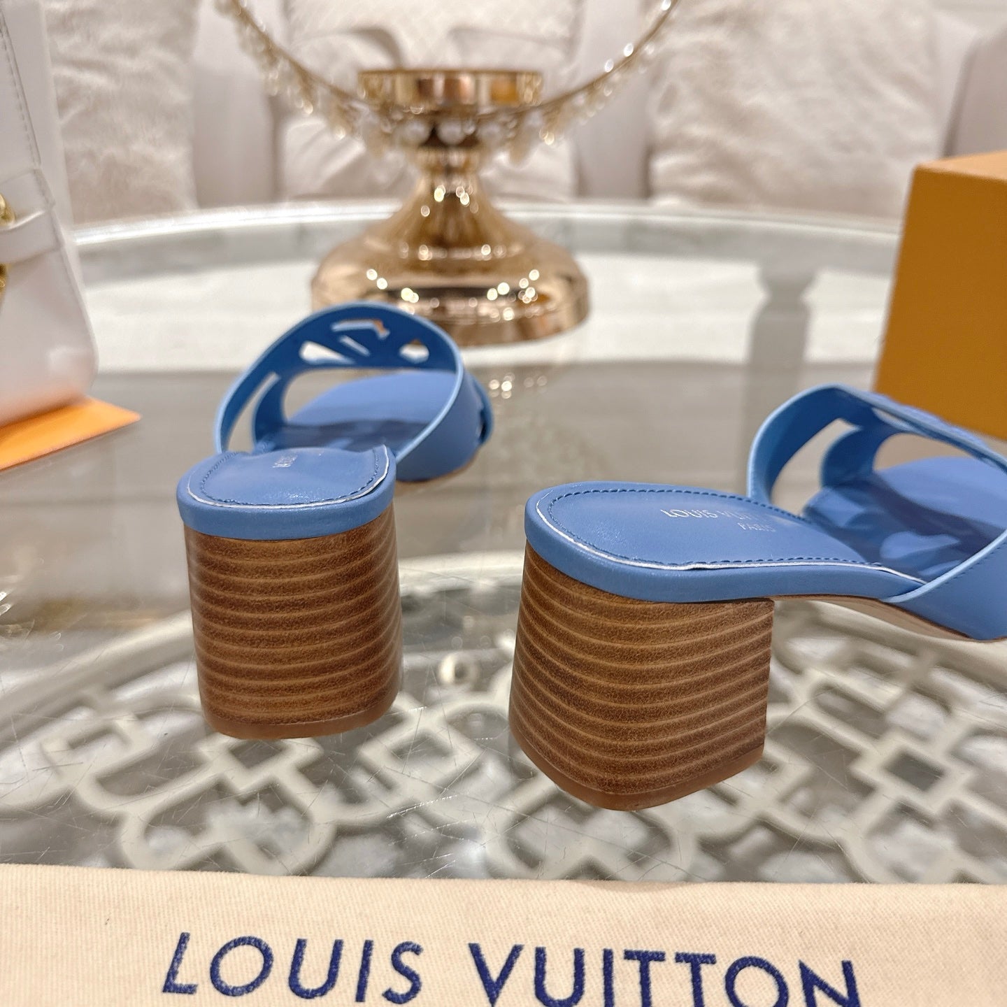 ISOLA HIGH 55 MM MULE IN CORNFLOWER BLUE CALFSKIN