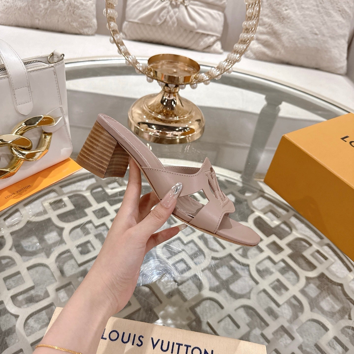 ISOLA HIGH 55 MM MULE IN DUSTY PINK CALFSKIN
